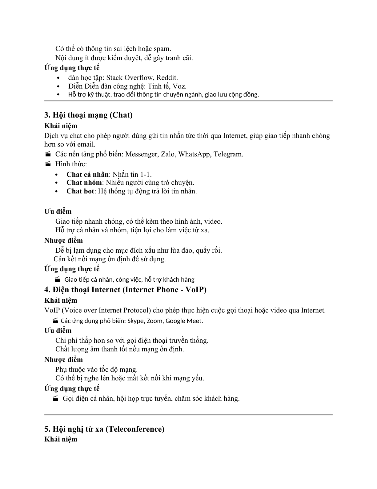 Các ứng dụng phổ biến: Skype, Zoom, Google Meet. Ưu điểm