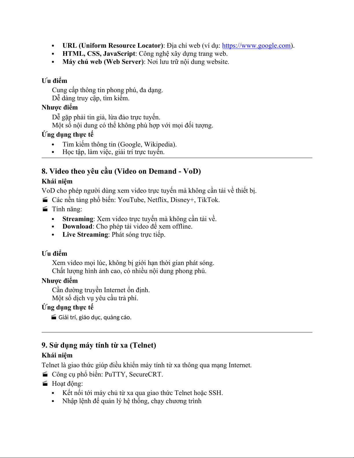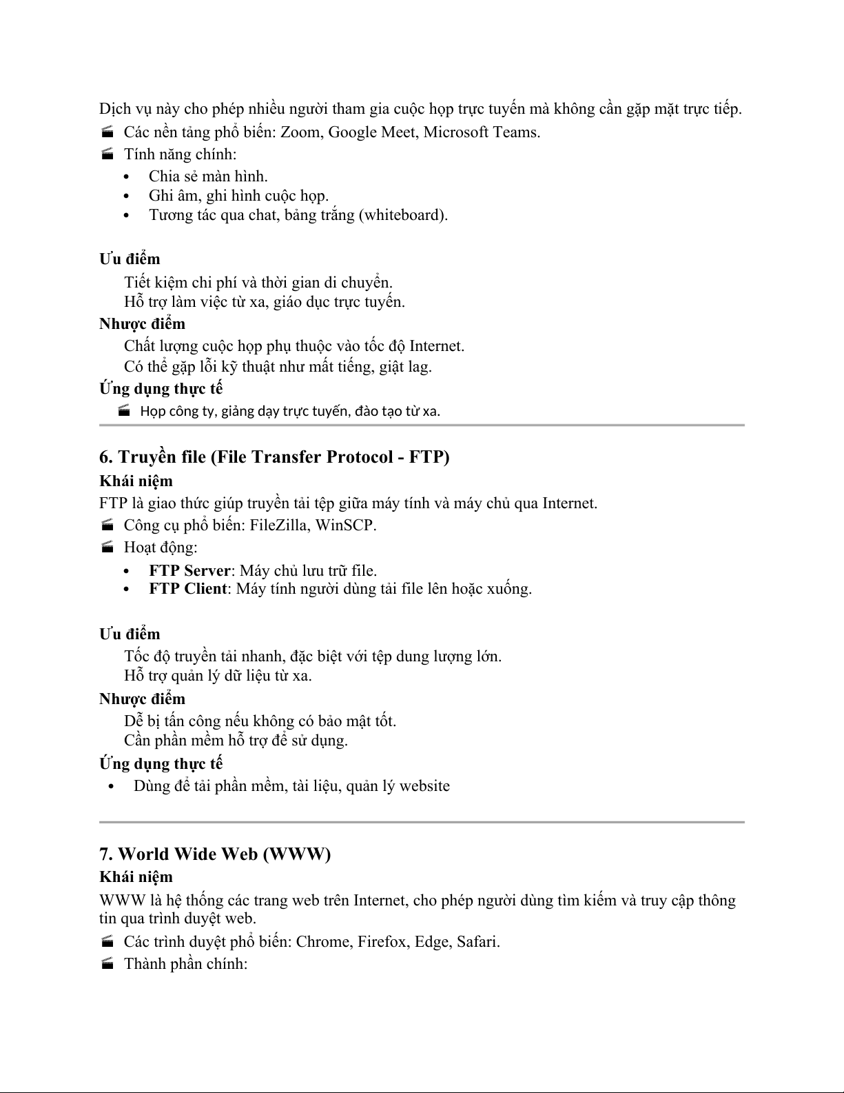 Dùng để tải phần mềm, tài liệu, quản lý website 7. World Wide Web (WWW) Khái niệm
