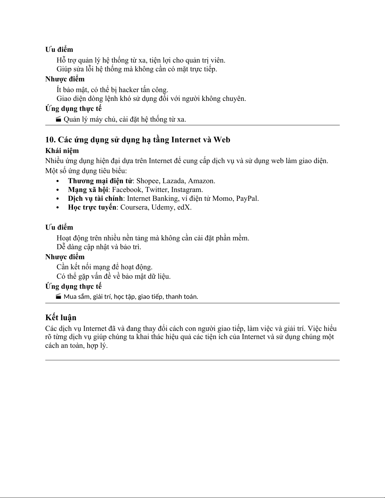Mua sắm, giải trí, học tập, giao tiếp, thanh toán. Kết luận