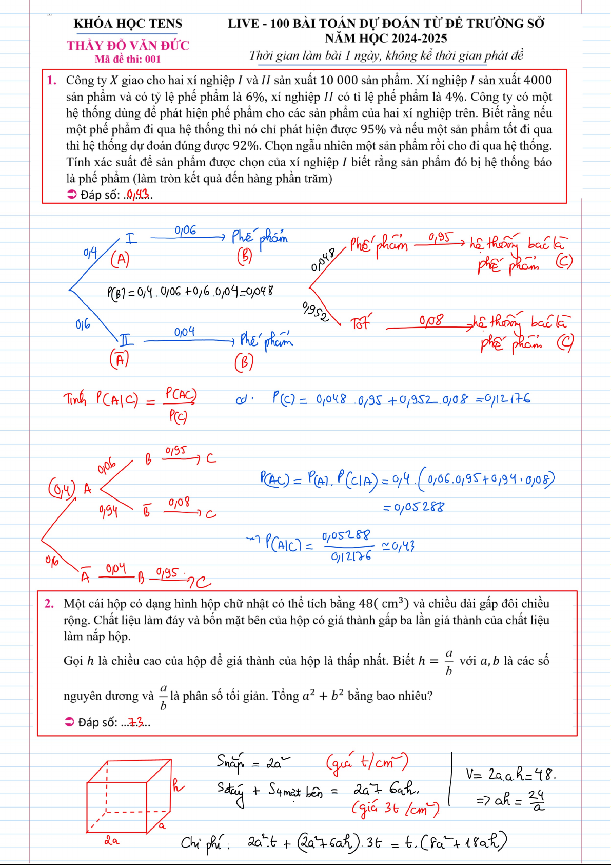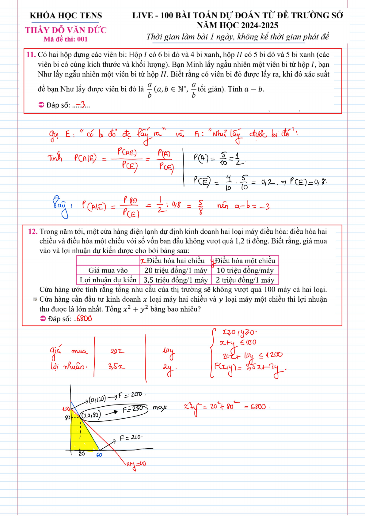 Bản viết tay - 100 bài toán dự đoán từ để trường sở năm học 2024-2025