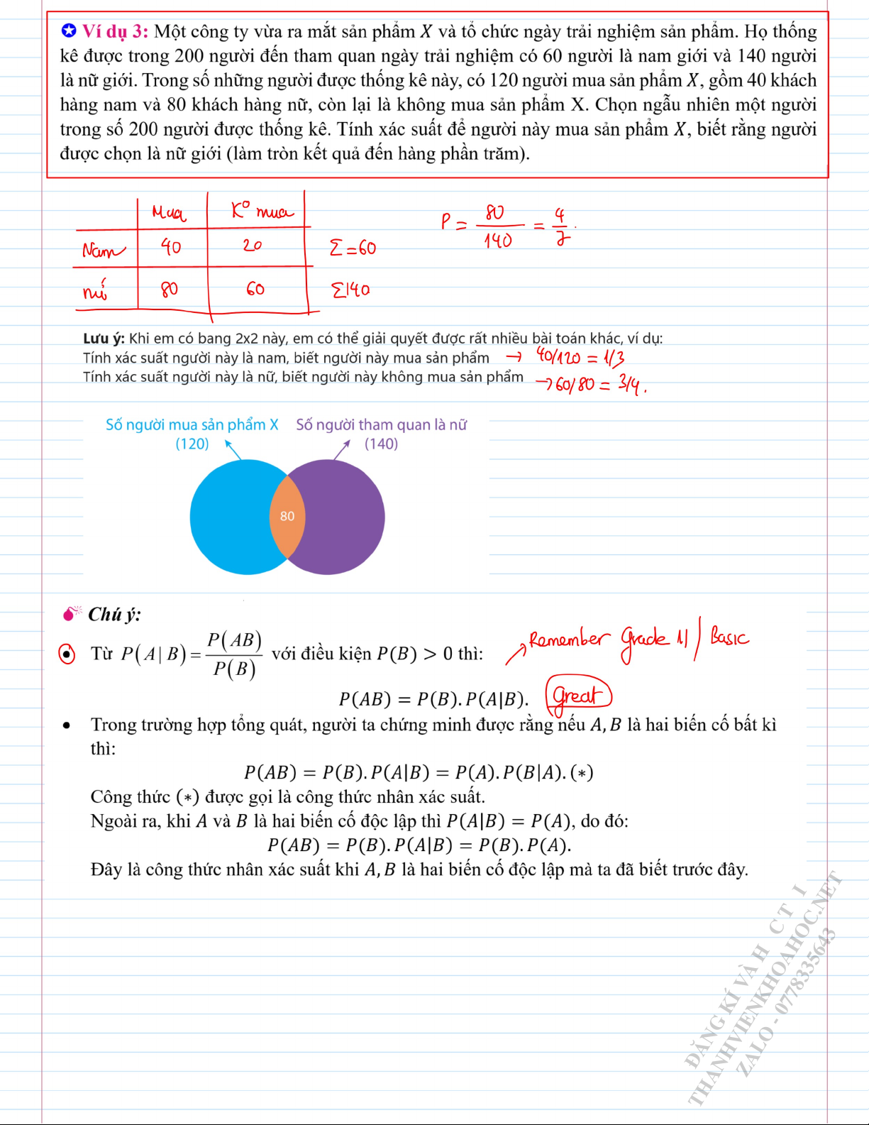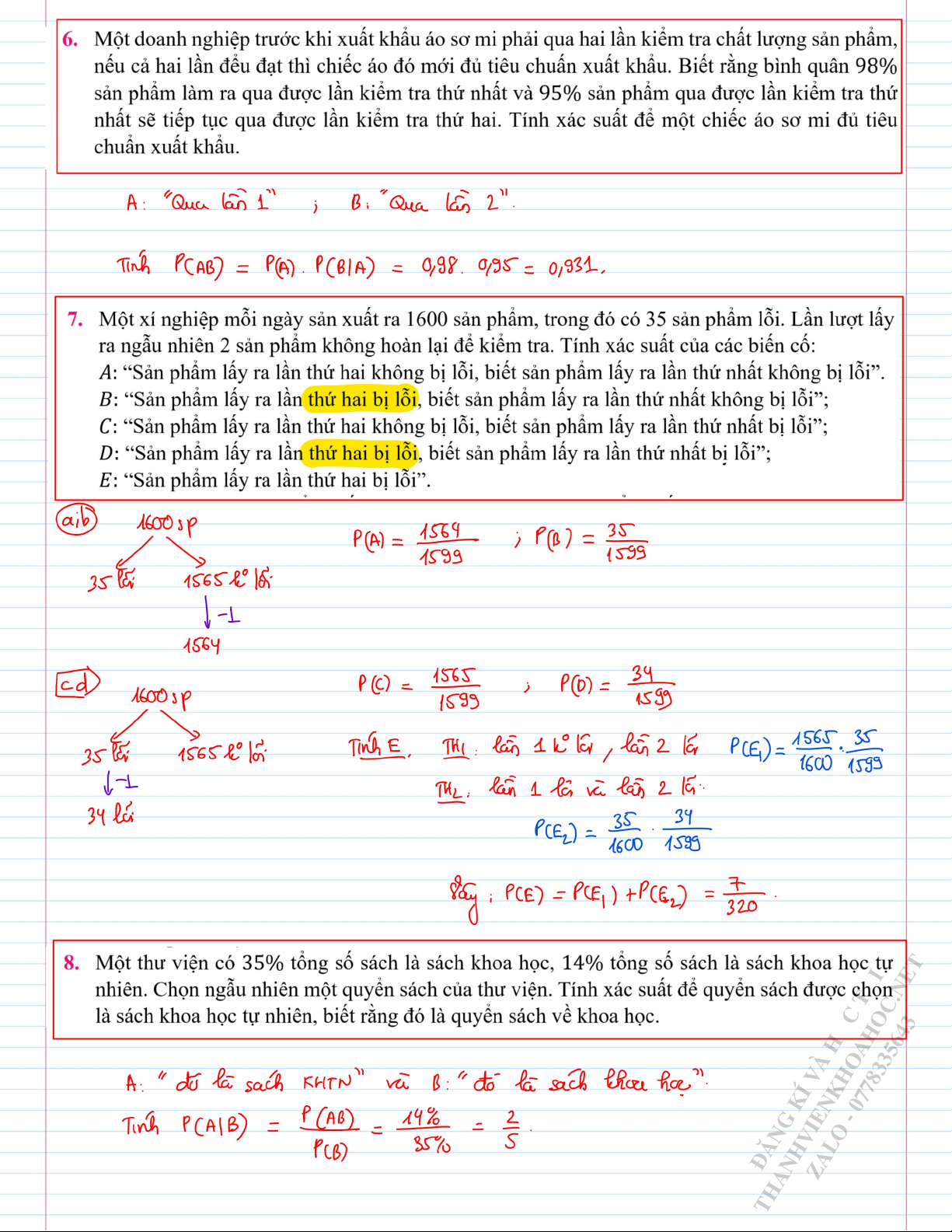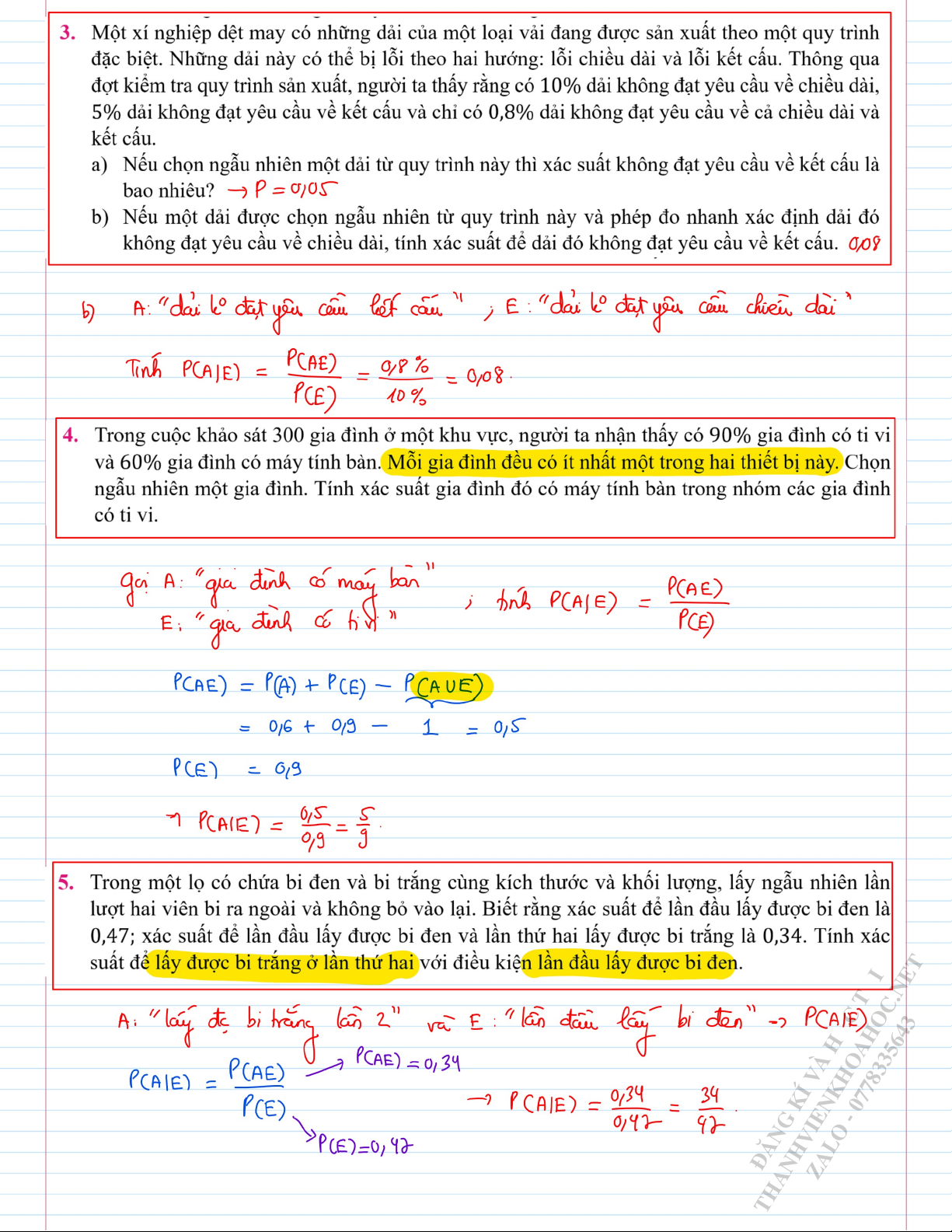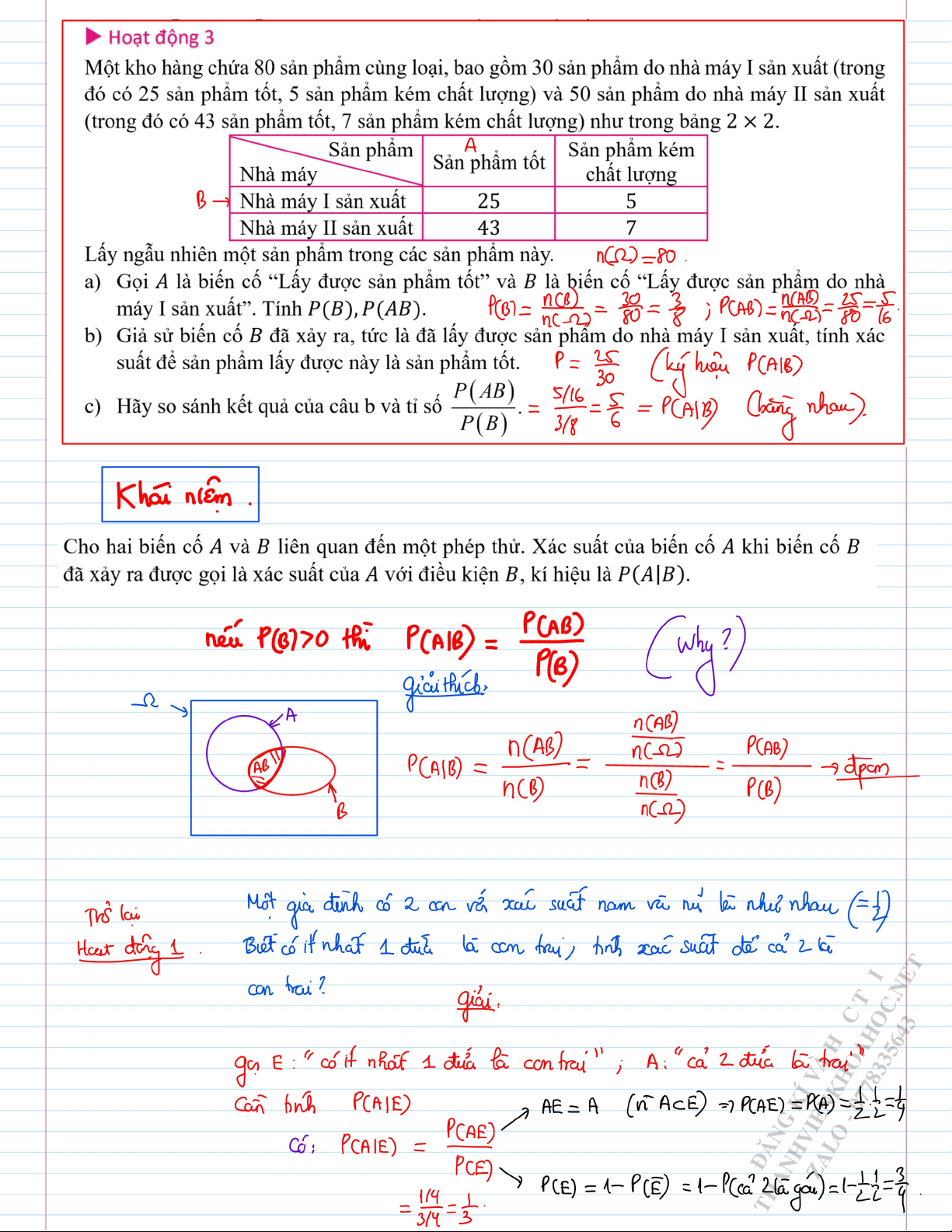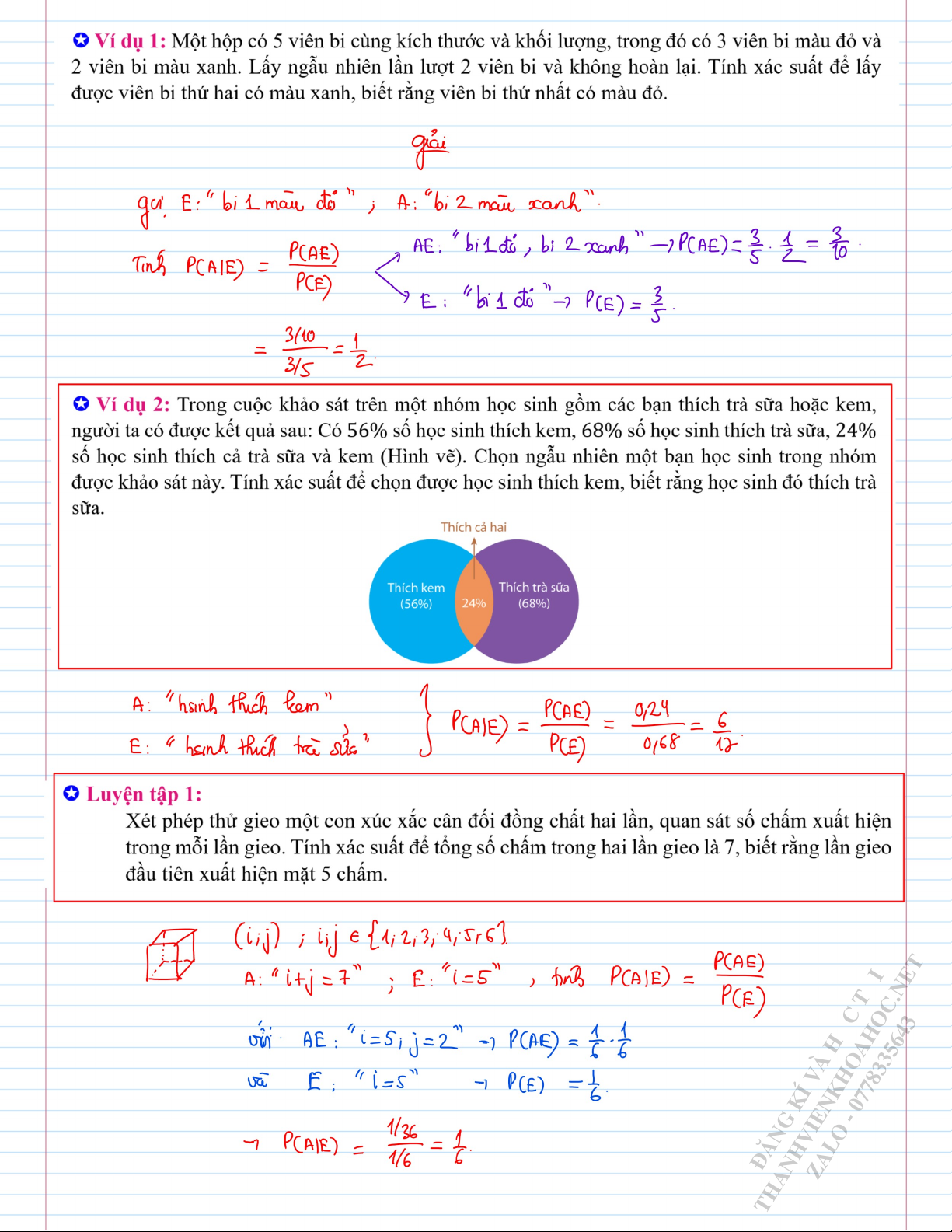 Bản viết tay Xác suất có điều kiện (TF1) môn Toán 12