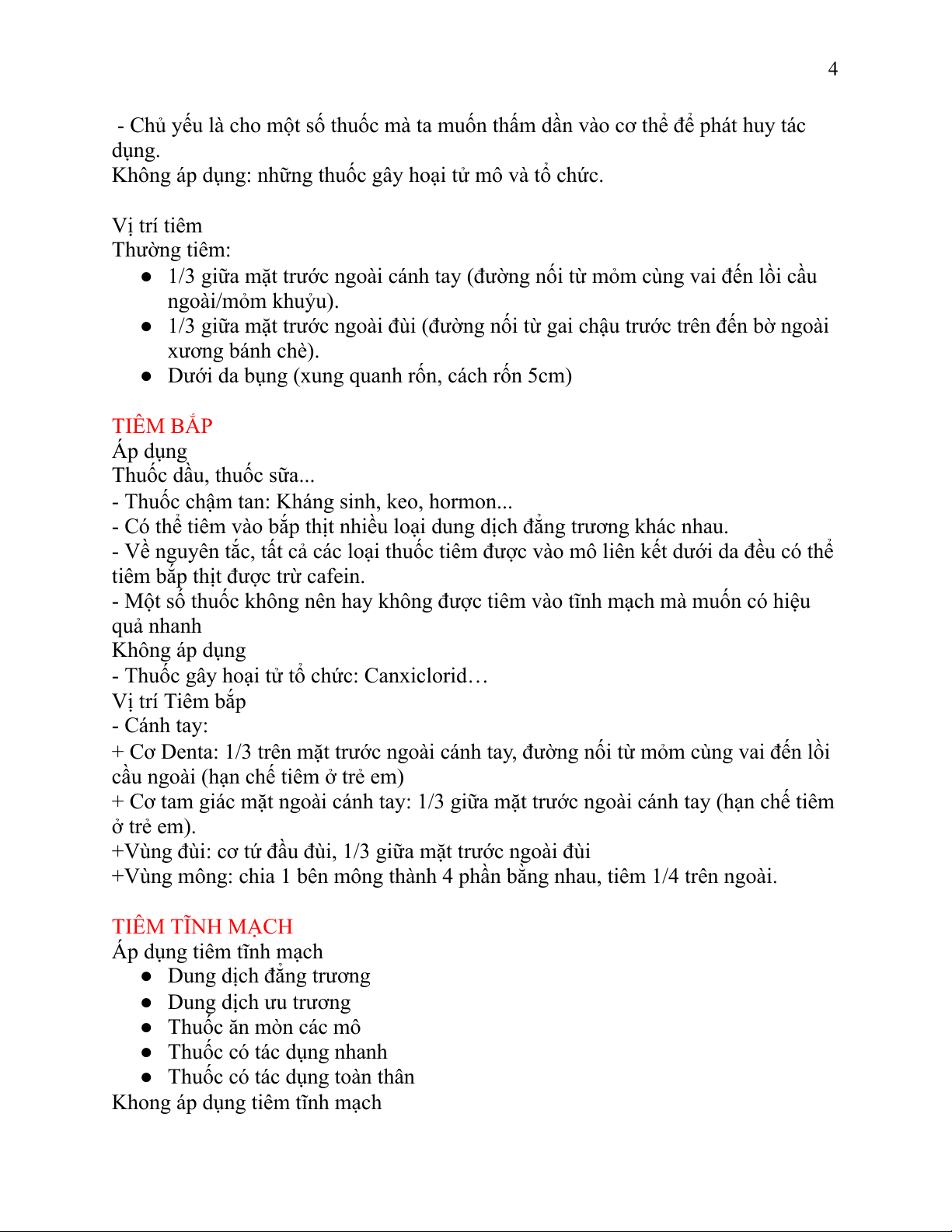 +Vùng mông: chia 1 bên mông thành 4 phần bằng nhau, tiêm 1/4 trên ngoài. TIÊM TĨNH MẠCH Áp dụng tiêm tĩnh mạch