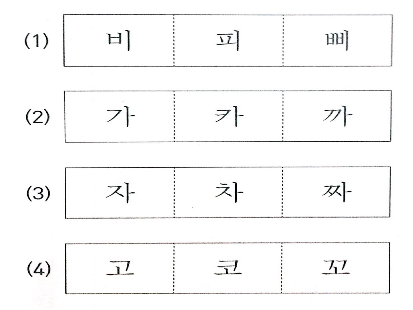 Âm thường ㄱ ㄴ ㄷ ㄹ ㅁ ㅂ ㅅ ㅈ k n t r m b s ch Âm căng ㄲ ㄸ ㅃ ㅆ ㅉ Âm bật hơi ㅋ ㅌ ㅍ ㅊㅎ k th p j h