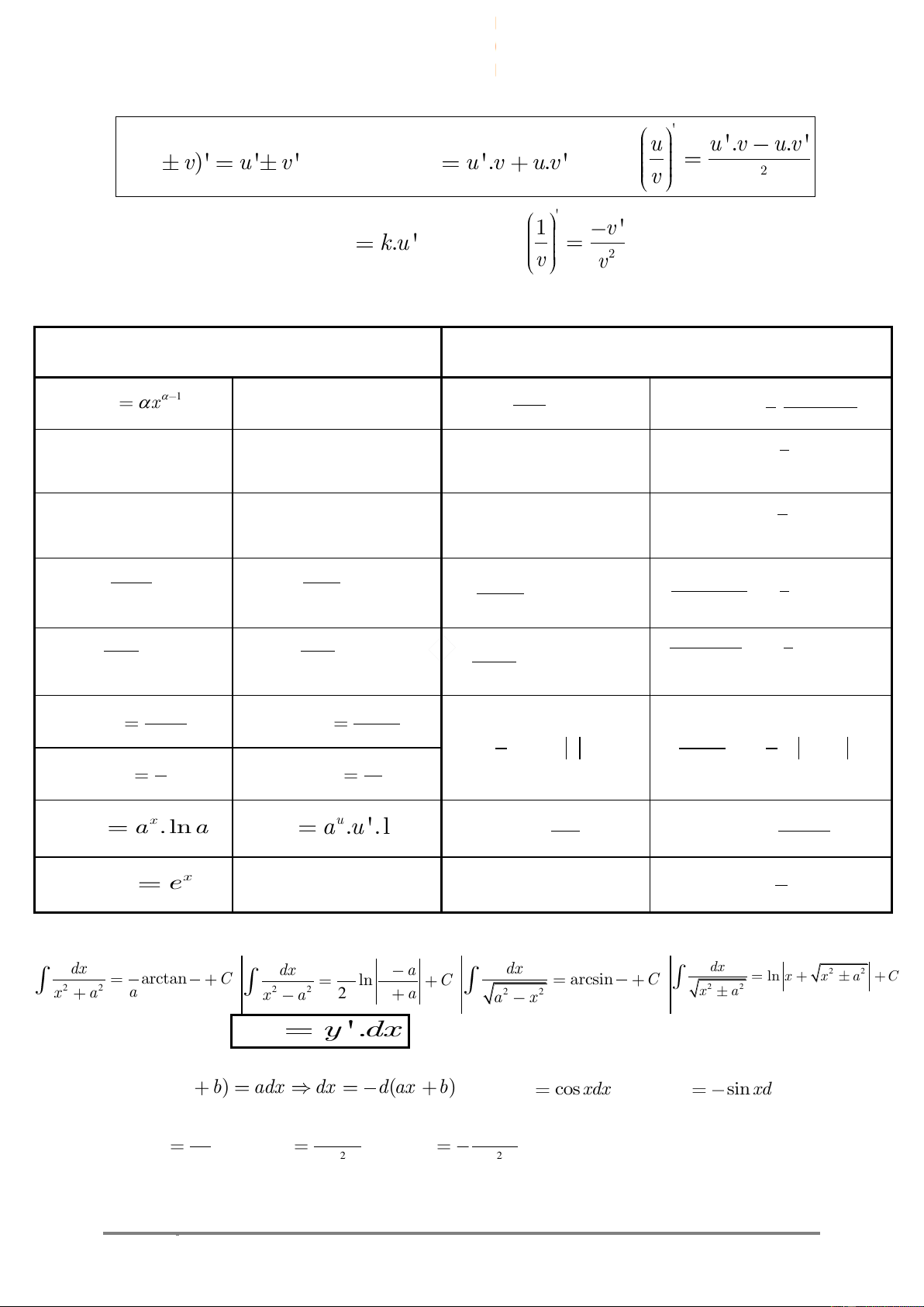 BAÛNG COÂNG THÖÙC ÑAÏO HAØM - NGUYEÂN HAØM