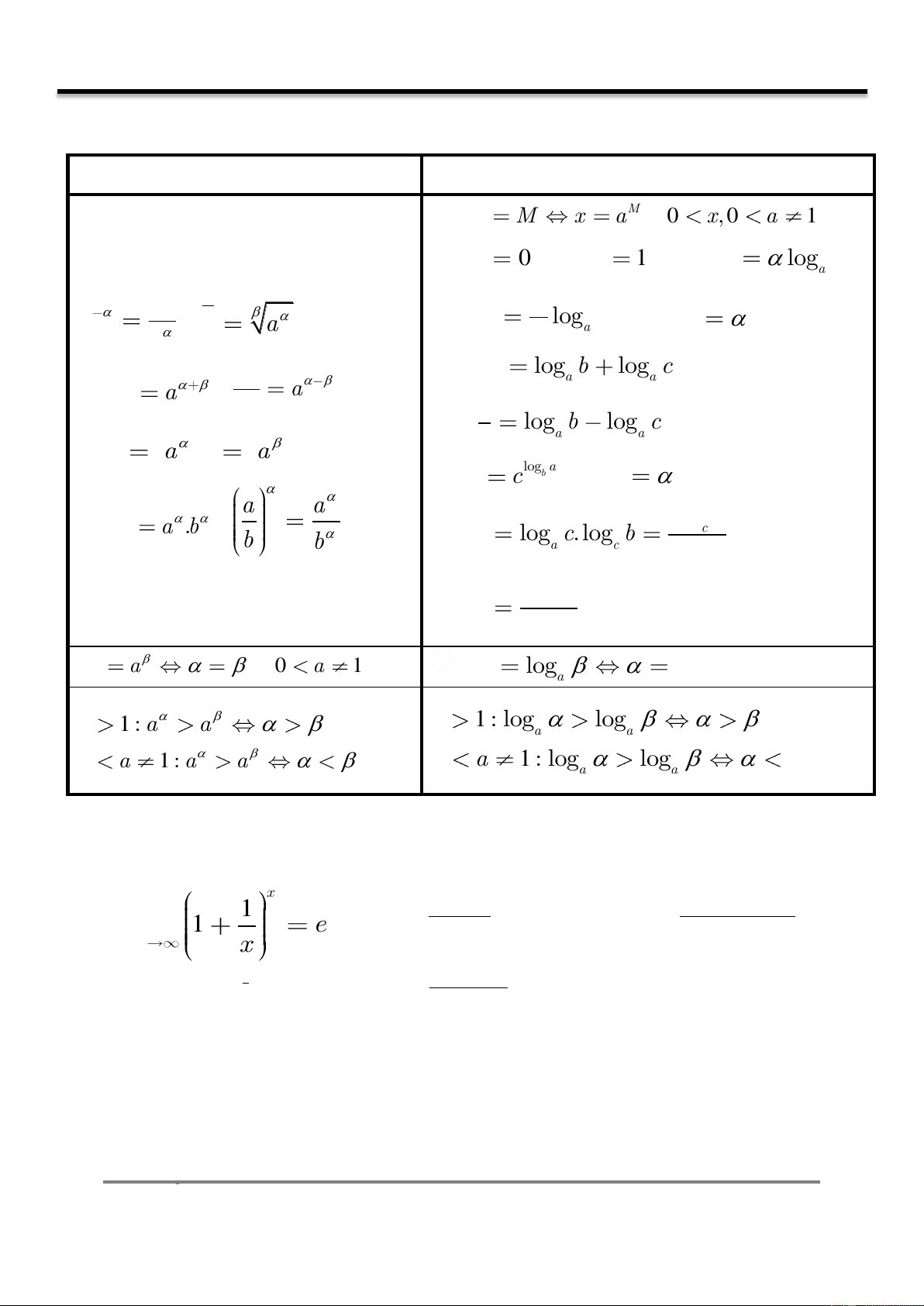 BAÛNG COÂNG THÖÙC MUÕõ - LOGARIT