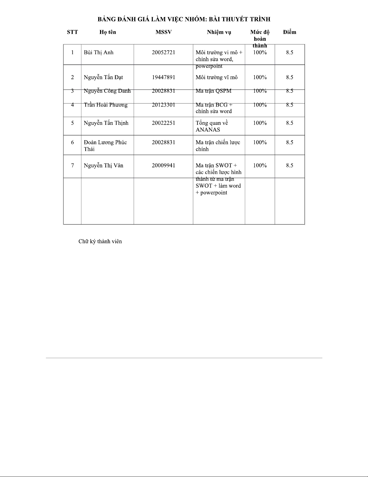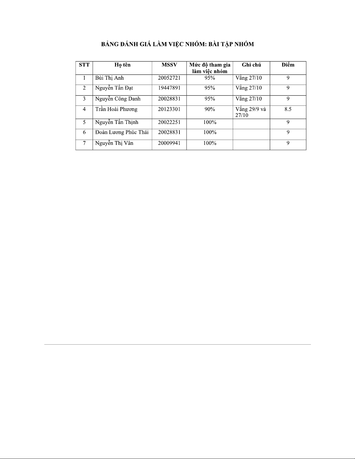 Bảng Đánh Giá Nhóm Hoạt Động và Thảo Luận - Khoa học QL 2023