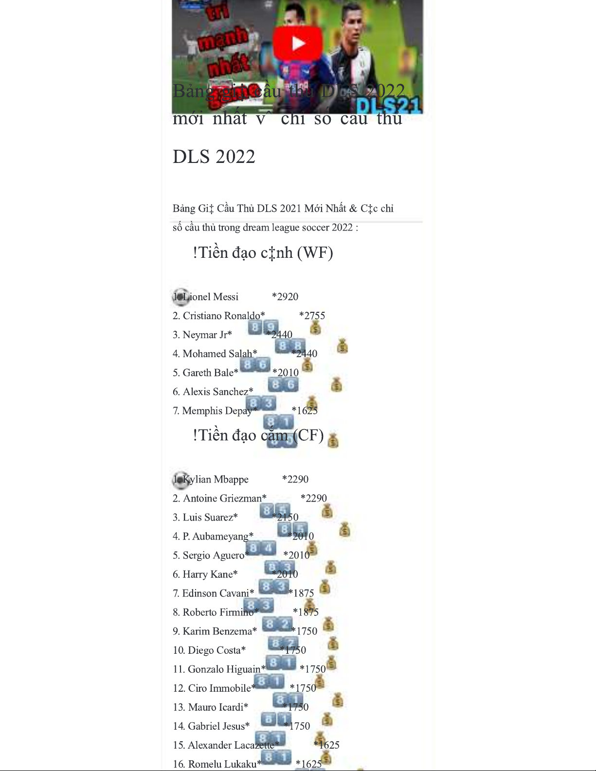 Bảng Giá Cầu Thủ DLS 2022 & Ý Nghĩa Chỉ Số Trong Dream League Soccer