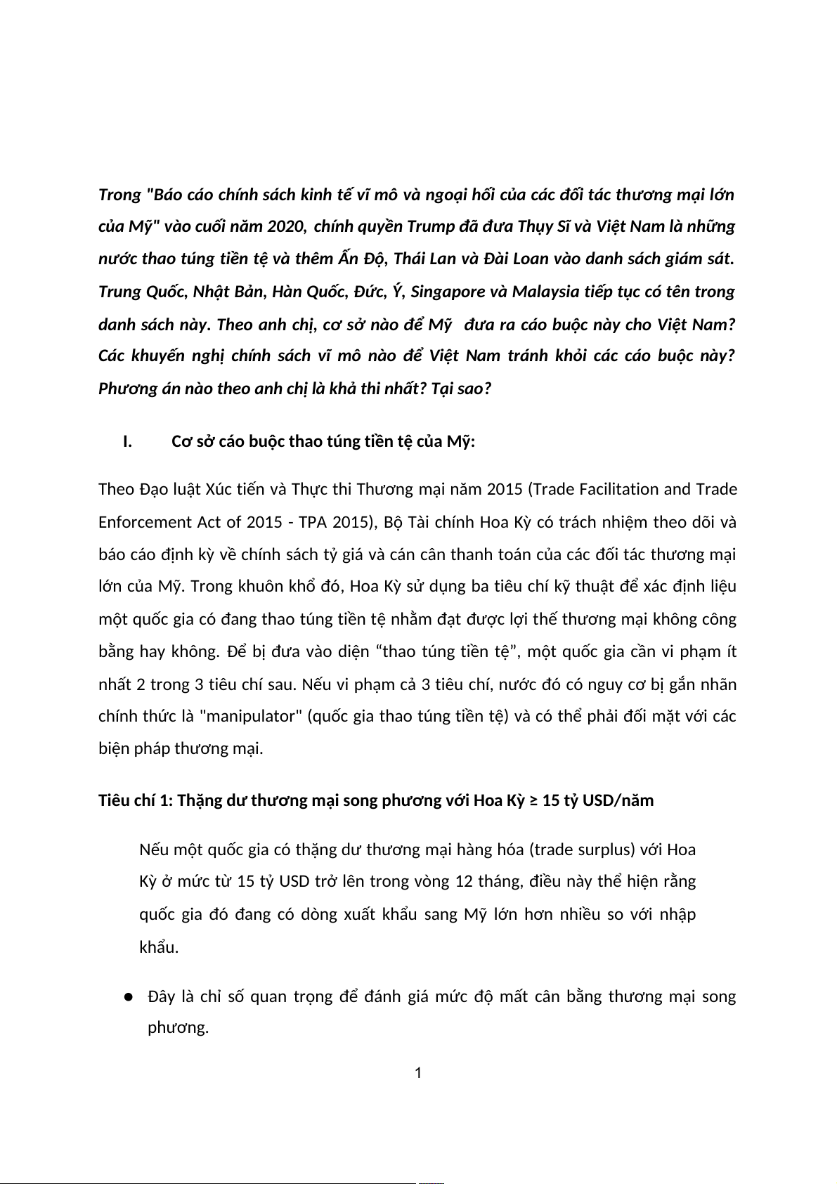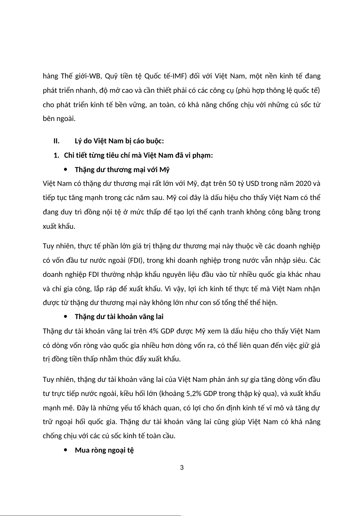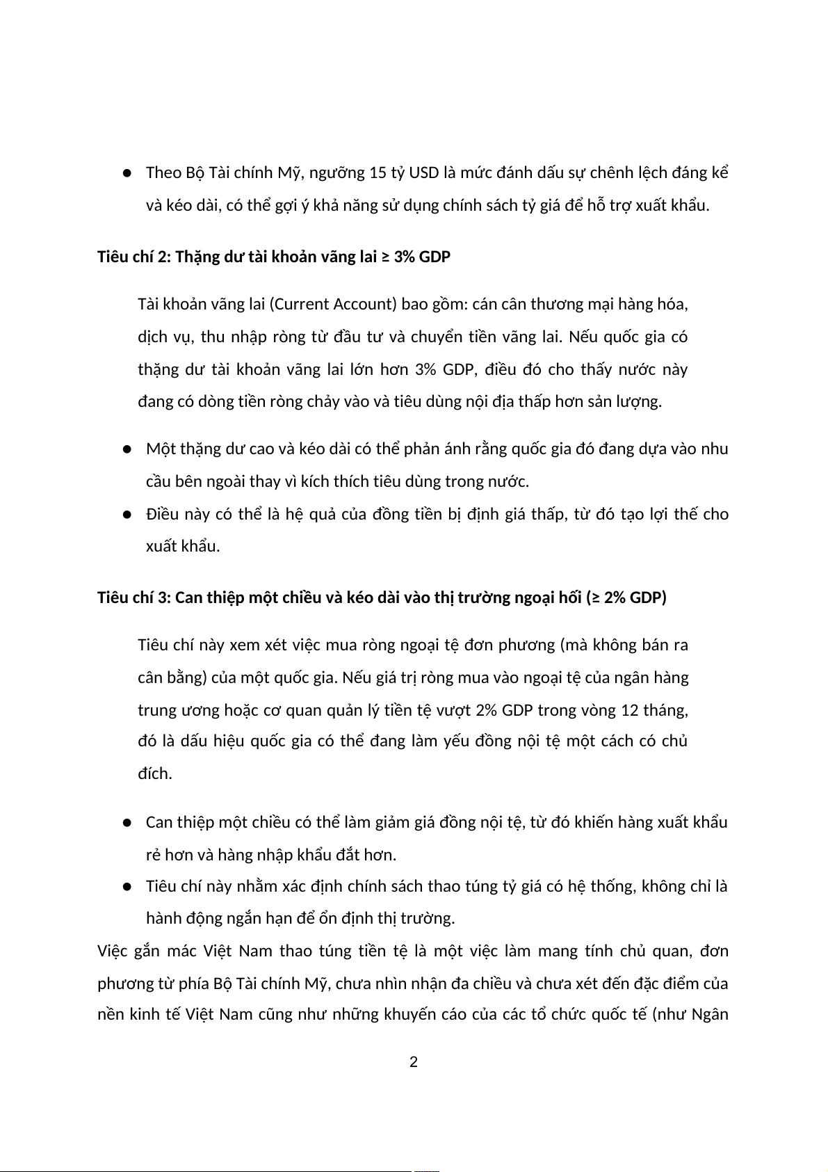 nhất 2 trong 3 tiêu chí sau. Nếu vi phạm cả 3 tiêu chí, nước đó có nguy cơ bị gắn nhãn