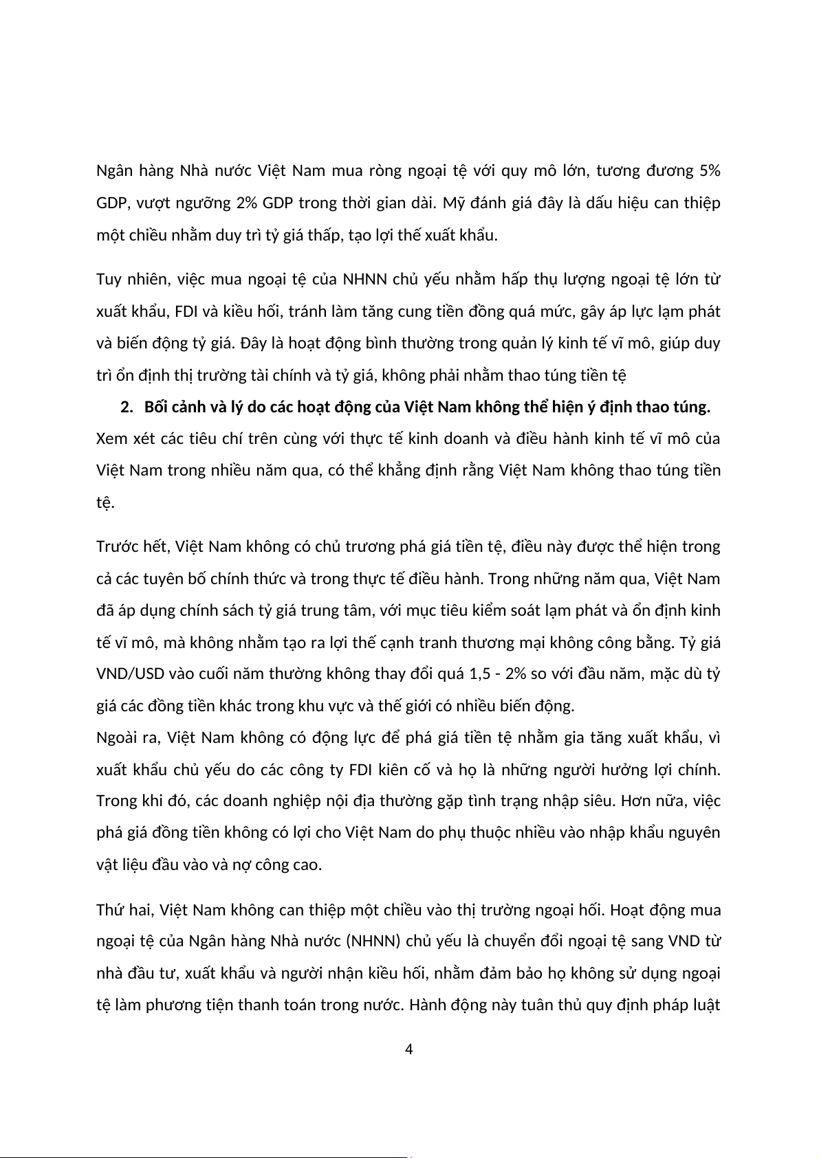 Việt Nam trong nhiều năm qua, có thể khẳng định rằng Việt Nam không thao túng tiền tệ.