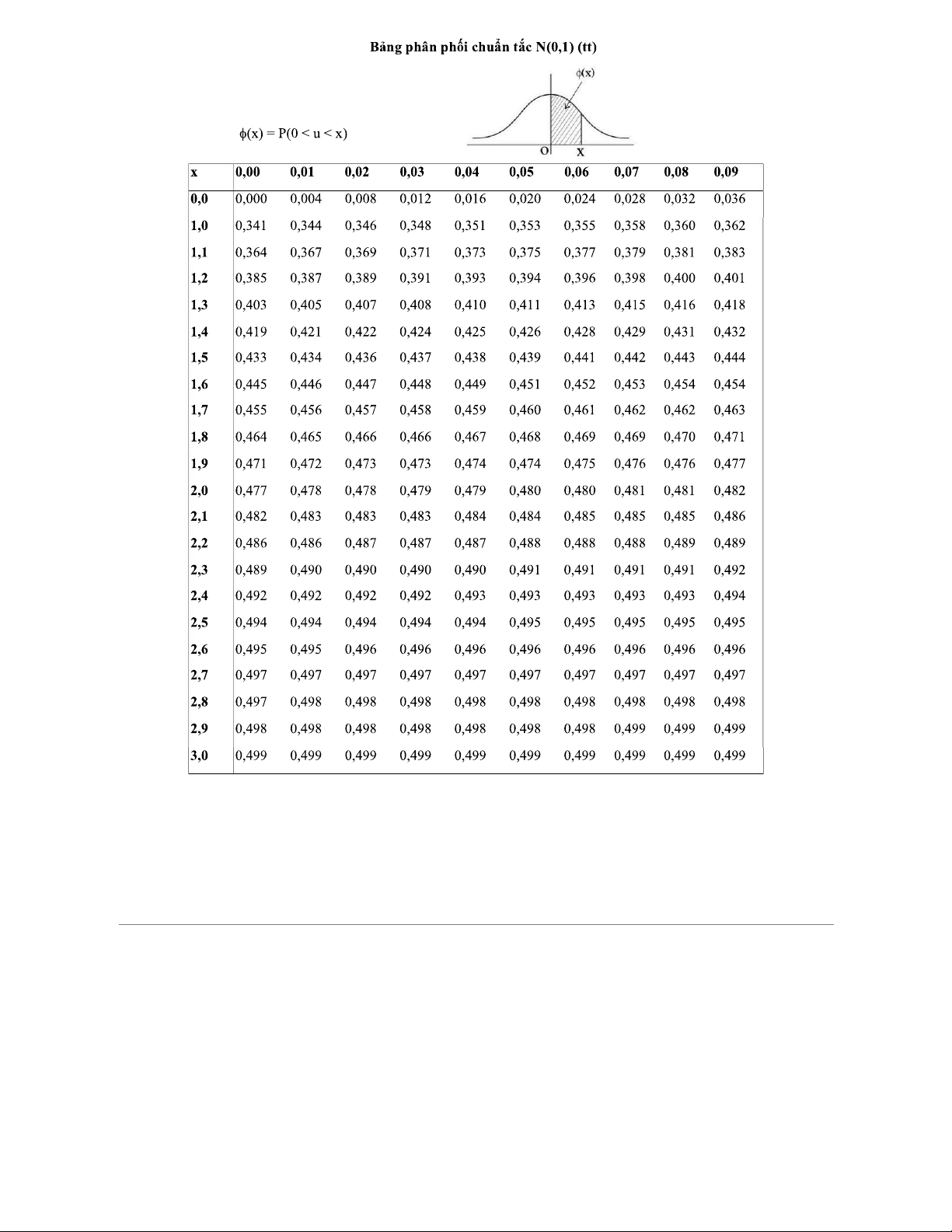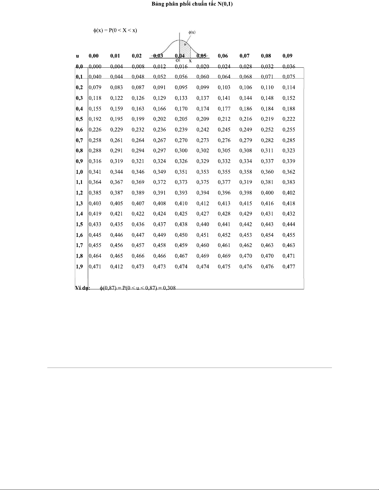 Bảng Phân phối Chuẩn tắc N(0;1) - Thông tin chi tiết và ví dụ