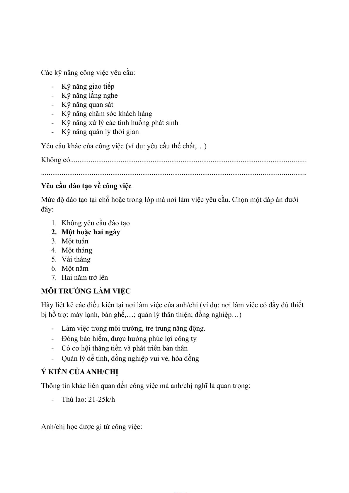 Yêu cầu đào tạo về công việc