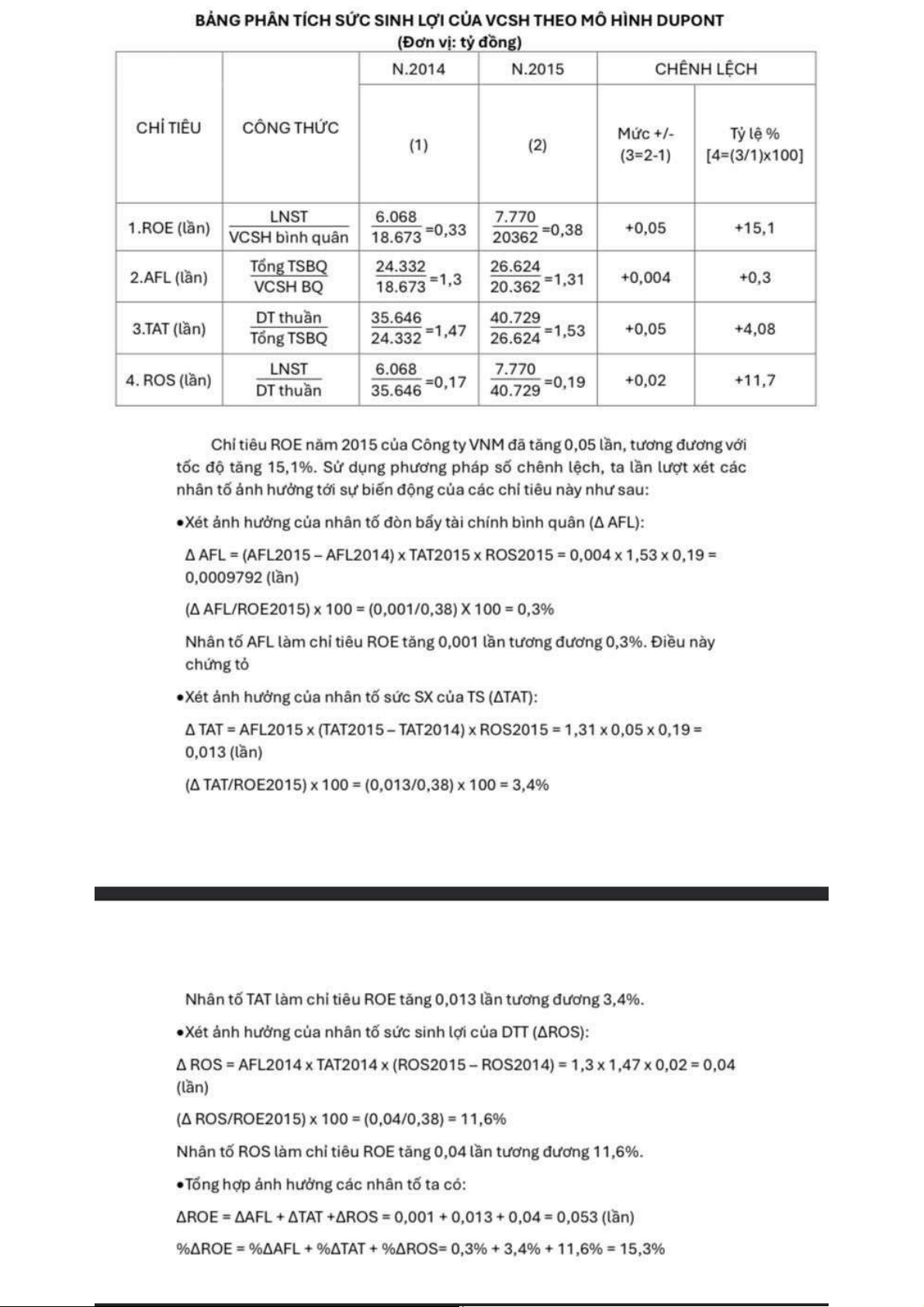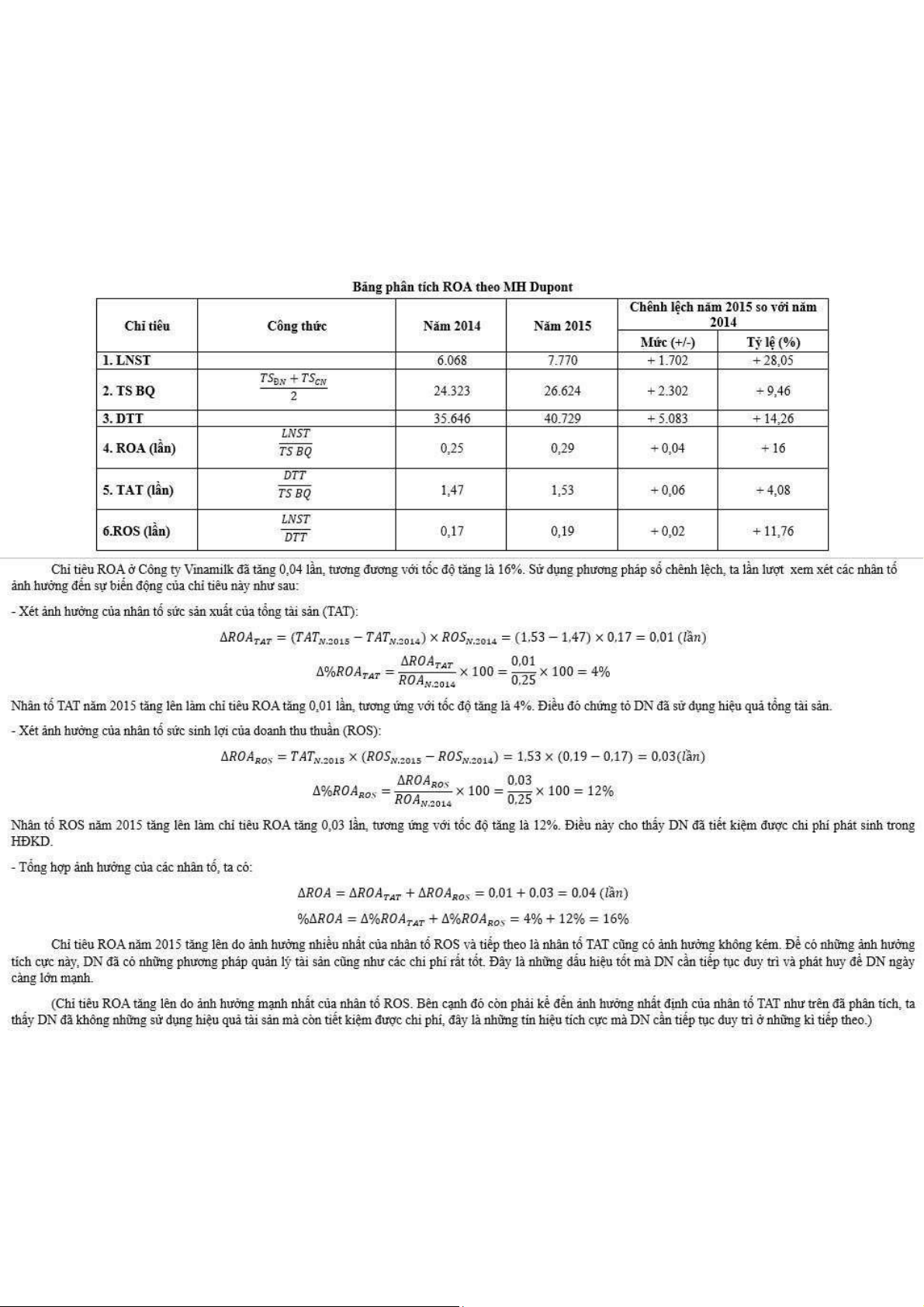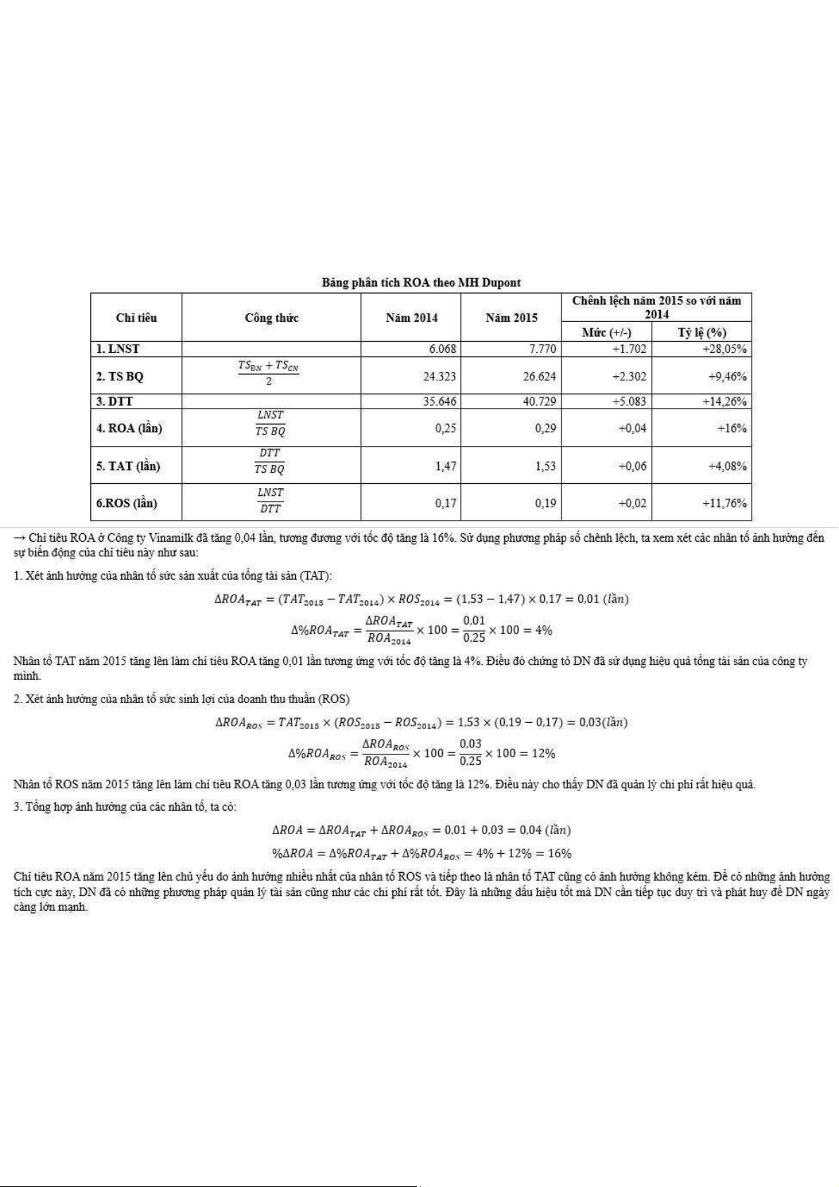 Bảng Phân Tích ROA theo Mô Hình Dupont Môn Phân tích báo cáo tài chính | Đại học Kinh Tế Quốc Dân