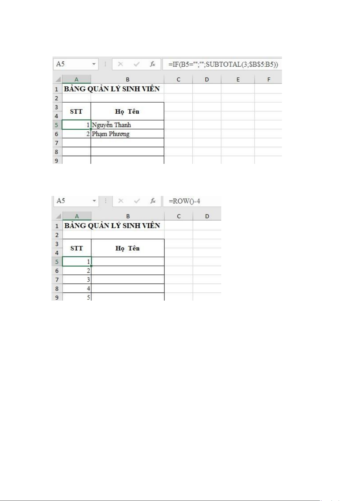-Như bảng dưới là cách ánh số thứ tự lồng IF và SUBTOTAL nghĩa là ô Họ tên nếu có dự liệu ô STT sẽ ược tự