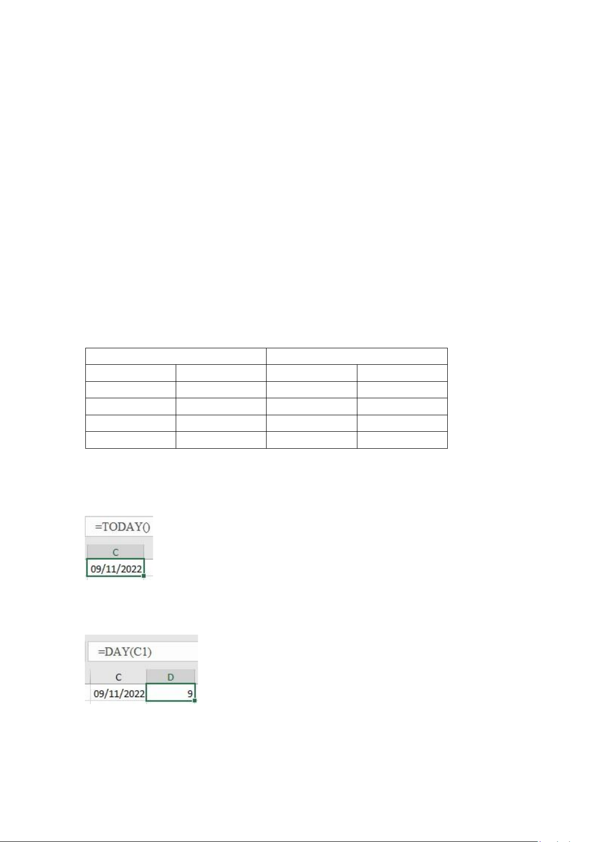 năm và trong ví dụ là 09/11/2022) lOMoAR cPSD| 58605085 7 d) Year()