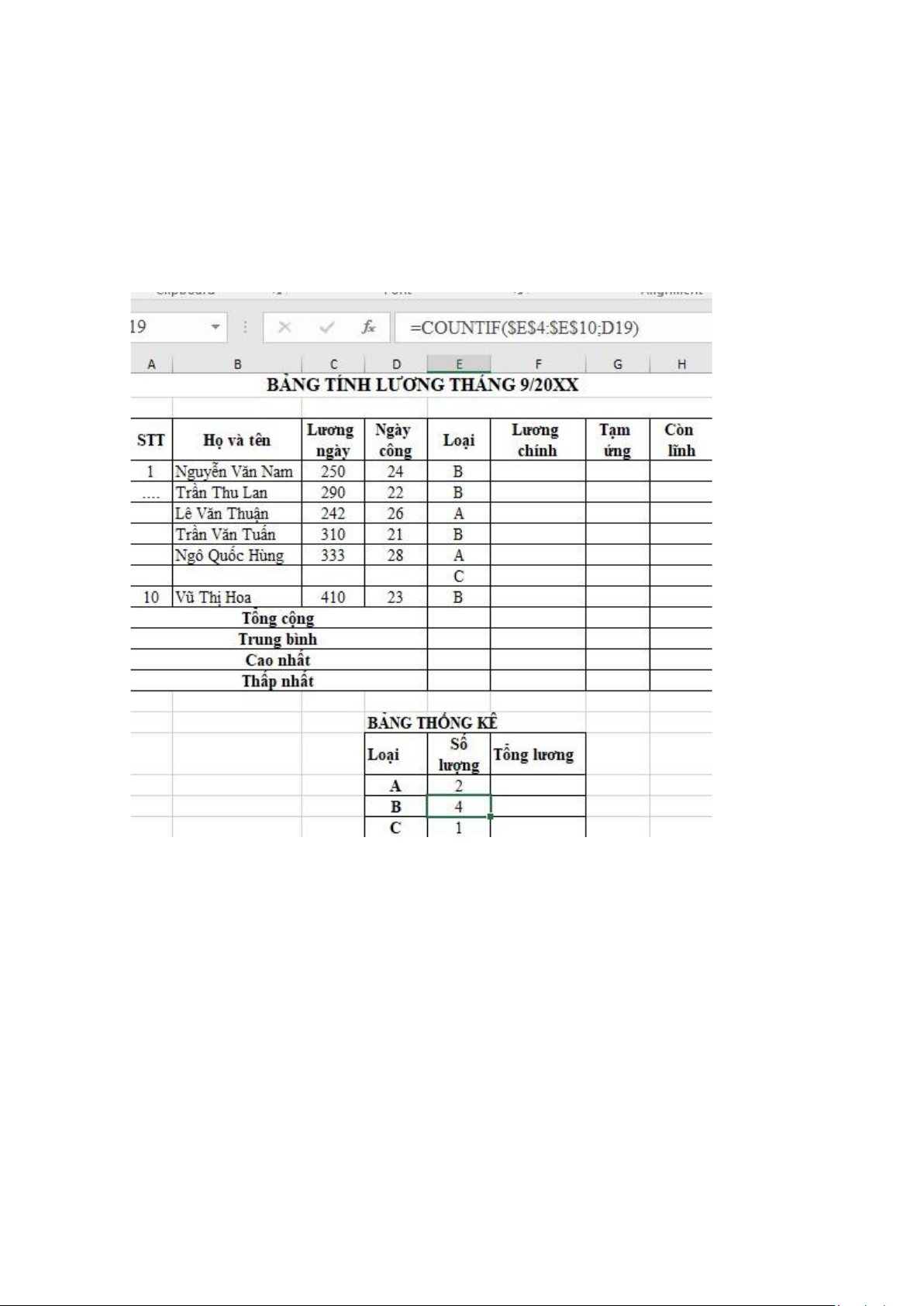 ối và ưa ra kết quả loại của loại A tổng lương nhận của loại A là 5205. lOMoAR cPSD| 58605085 10