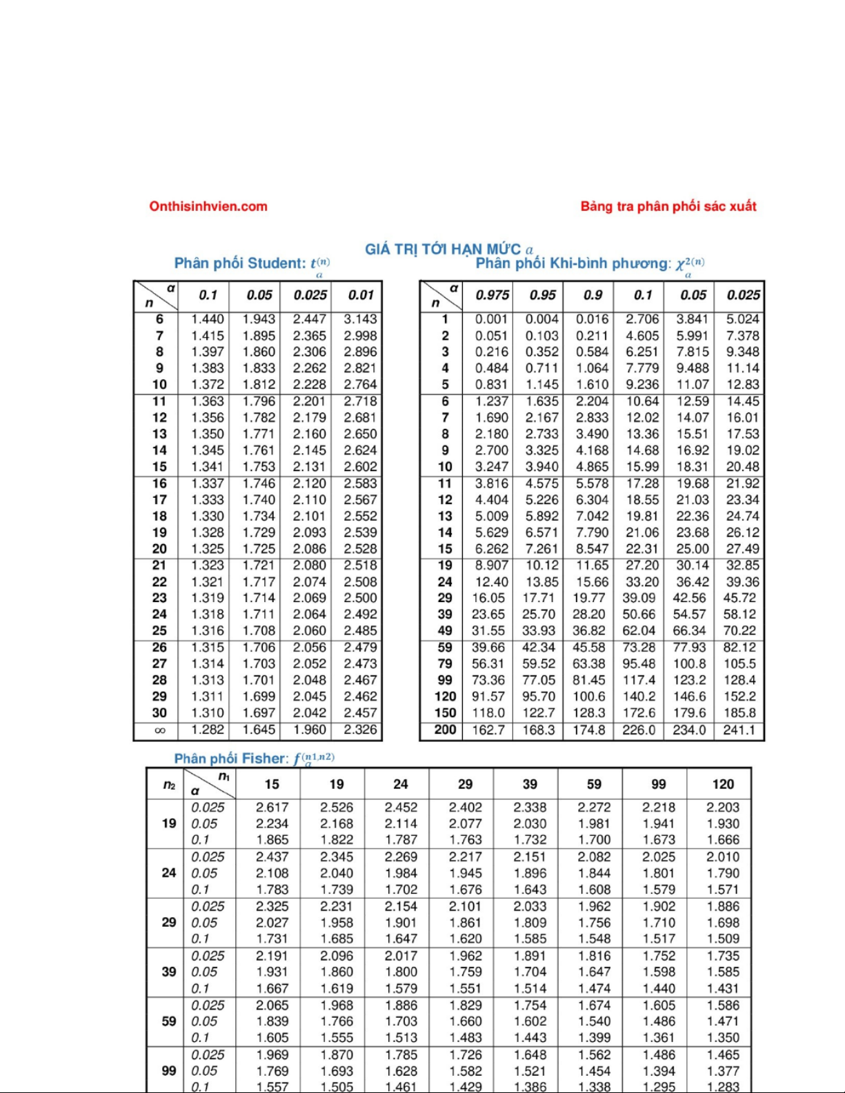Bảng giá trị phân phối thống kê poisson và student môn Xác suất thống kê| Trường Đại học Ngoại Thương