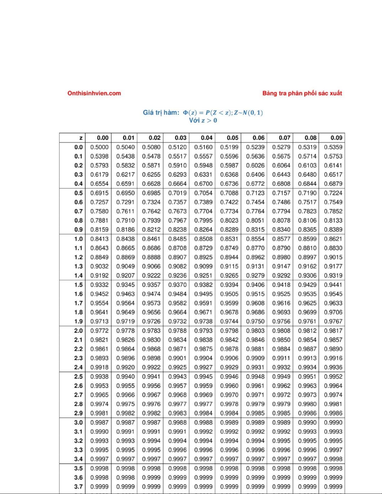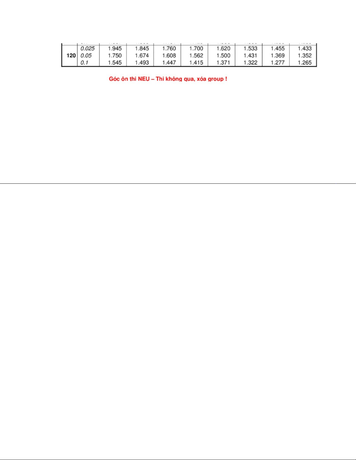 Bảng tổng hợp xác suất và kiểm định thống kê môn Xác suất thống kê| Trường Đại học Ngoại Thương