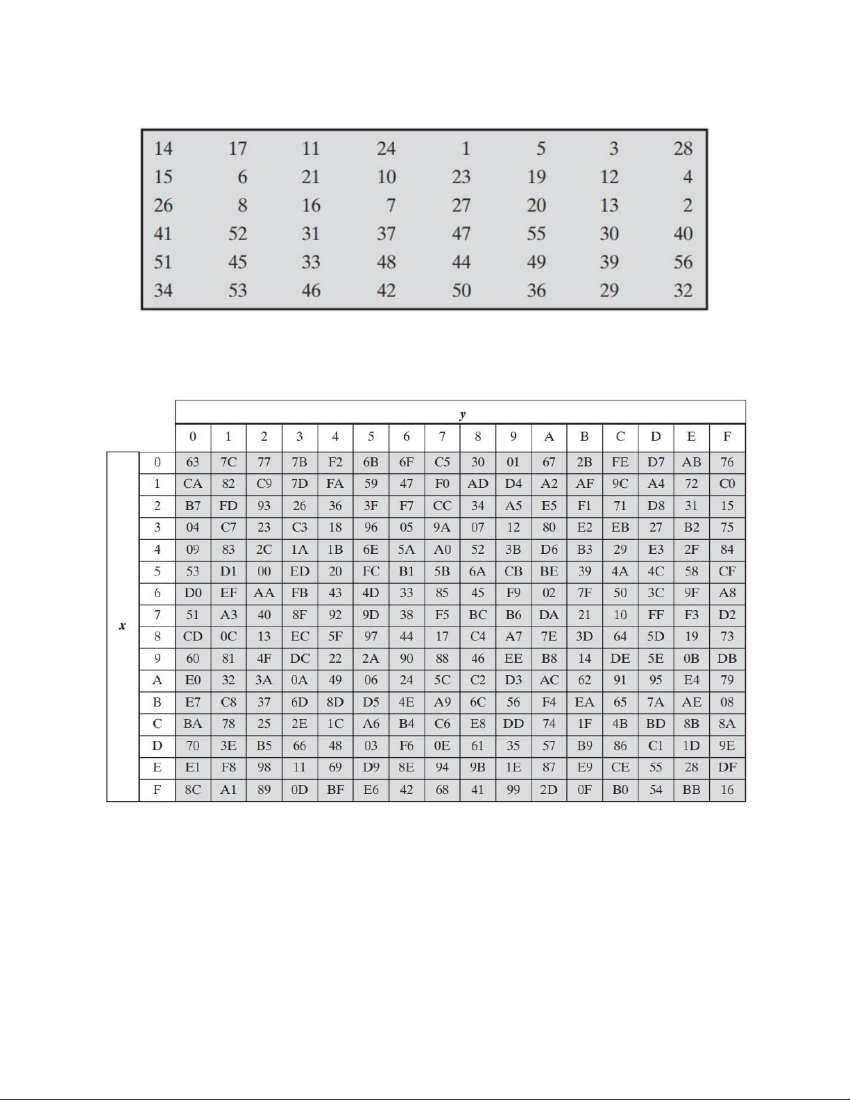 KEY COMPRESSION PBOX TABLE / PERMUTED CHOICE 2 (PC2) 3. AES S-BOX (SUBBYTES TABLE) lOMoAR cPSD| 61548706