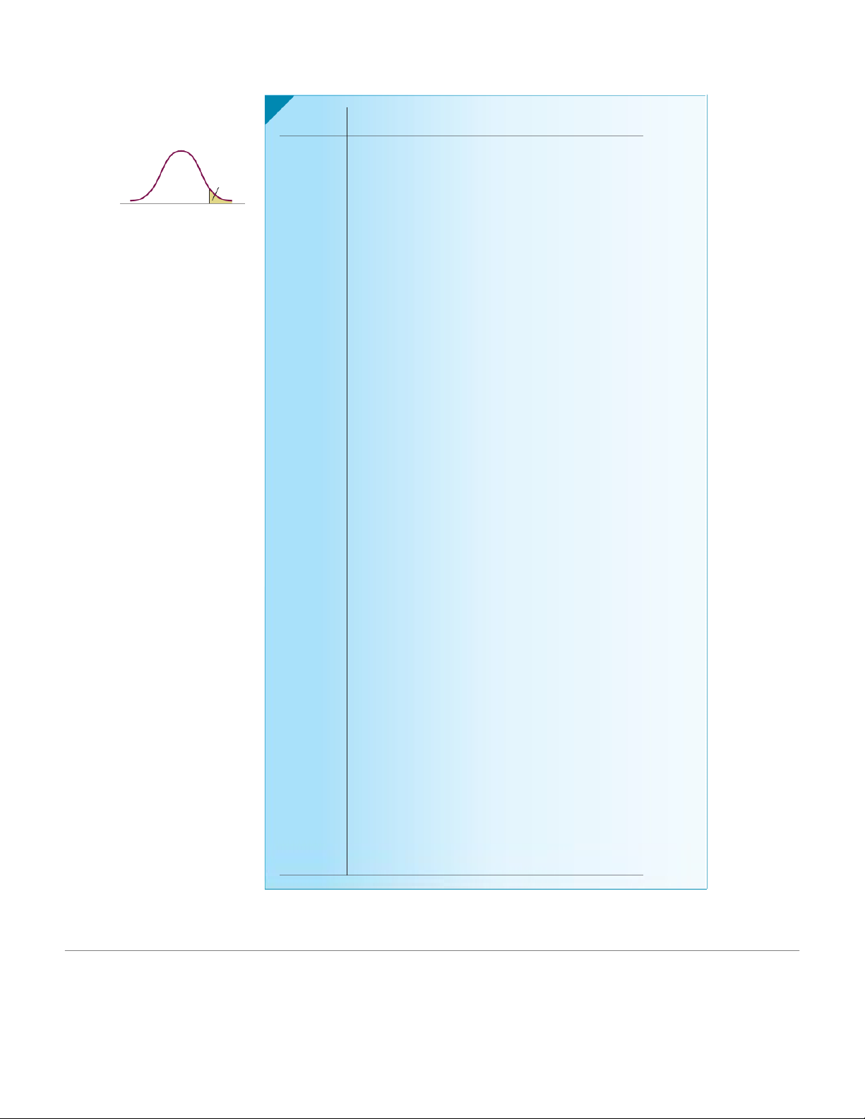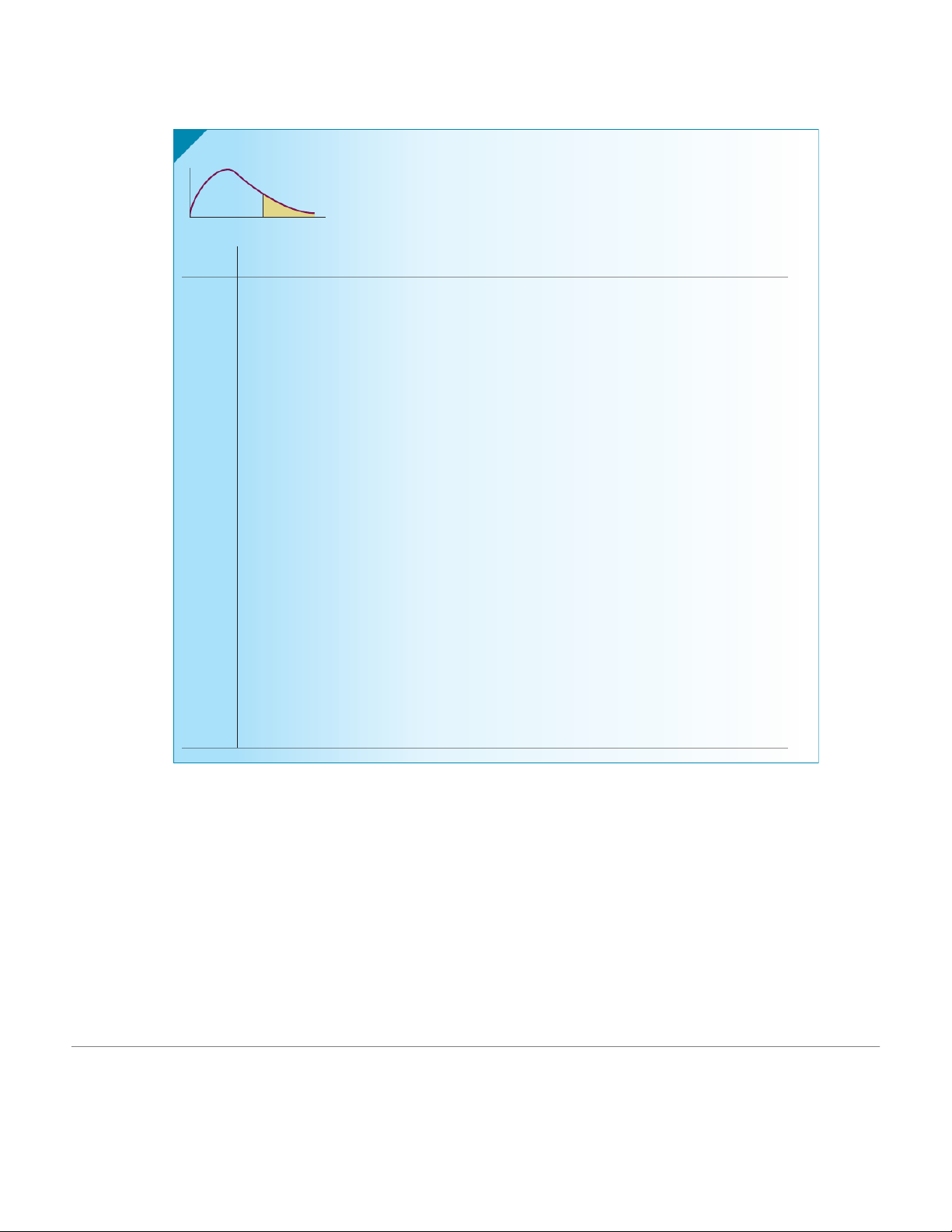 Editorial review has deemed that any suppressed content does not materially affect the overall learning experience. Cengage Learning reserves the right to remove additional content at any time if subsequent rights restrictions require it. B-10 APPENDI X B TABLE 4 Critical Values of the Degrees of Freedom t t t t t Student t Distribution .100 .050 .025 .010 .005 1 3.078 6.314 12.706 31.821 63.657 2 1.886 2.920 4.303 6.965 9.925 3 1.638 2.353 3.182 4.541 5.841 A 4 1.533 2.132 2.776 3.747 4.604 5 1.476 2.015 2.571 3.365 4.032 tA 6 1.440 1.943 2.447 3.143 3.707 7 1.415 1.895 2.365 2.998 3.499 8 1.397 1.860 2.306 2.896 3.355 9 1.383 1.833 2.262 2.821 3.250 10 1.372 1.812 2.228 2.764 3.169 11 1.363 1.796 2.201 2.718 3.106 12 1.356 1.782 2.179 2.681 3.055 13 1.350 1.771 2.160 2.650 3.012 14 1.345 1.761 2.145 2.624 2.977 15 1.341 1.753 2.131 2.602 2.947 16 1.337 1.746 2.120 2.583 2.921 17 1.333 1.740 2.110 2.567 2.898 18 1.330 1.734 2.101 2.552 2.878 19 1.328 1.729 2.093 2.539 2.861 20 1.325 1.725 2.086 2.528 2.845 21 1.323 1.721 2.080 2.518 2.831 22 1.321 1.717 2.074 2.508 2.819 23 1.319 1.714 2.069 2.500 2.807 24 1.318 1.711 2.064 2.492 2.797 25 1.316 1.708 2.060 2.485 2.787 26 1.315 1.706 2.056 2.479 2.779 27 1.314 1.703 2.052 2.473 2.771 28 1.313 1.701 2.048 2.467 2.763 29 1.311 1.699 2.045 2.462 2.756 30 1.310 1.697 2.042 2.457 2.750 35 1.306 1.690 2.030 2.438 2.724 40 1.303 1.684 2.021 2.423 2.704 45 1.301 1.679 2.014 2.412 2.690 50 1.299 1.676 2.009 2.403 2.678 55 1.297 1.673 2.004 2.396 2.668 60 1.296 1.671 2.000 2.390 2.660 65 1.295 1.669 1.997 2.385 2.654 70 1.294 1.667 1.994 2.381 2.648 75 1.293 1.665 1.992 2.377 2.643 80 1.292 1.664 1.990 2.374 2.639 85 1.292 1.663 1.988 2.371 2.635 90 1.291 1.662 1.987 2.368 2.632 95 1.291 1.661 1.985 2.366 2.629 100 1.290 1.660 1.984 2.364 2.626 110 1.289 1.659 1.982 2.361 2.621 120 1.289 1.658 1.980 2.358 2.617 130 1.288 1.657 1.978 2.355 2.614 140 1.288 1.656 1.977 2.353 2.611 150 1.287 1.655 1.976 2.351 2.609 160 1.287 1.654 1.975 2.350 2.607 170 1.287 1.654 1.974 2.348 2.605 180 1.286 1.653 1.973 2.347 2.603 190 1.286 1.653 1.973 2.346 2.602 200 1.286 1.653 1.972 2.345 2.601 q1.282 1.645 1.960 2.326 2.576