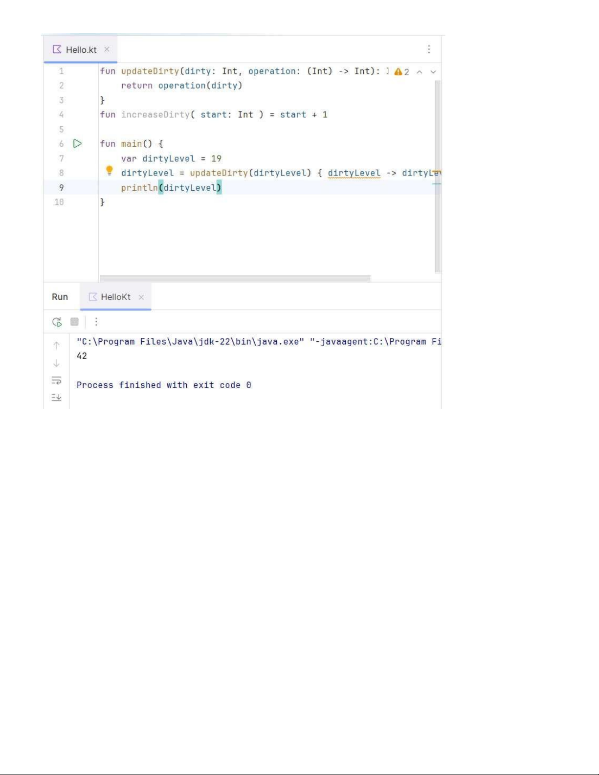 For example: dirtyLevel = updateDirty(dirtyLevel) { dirtyLevel -> dirtyLevel + 23}