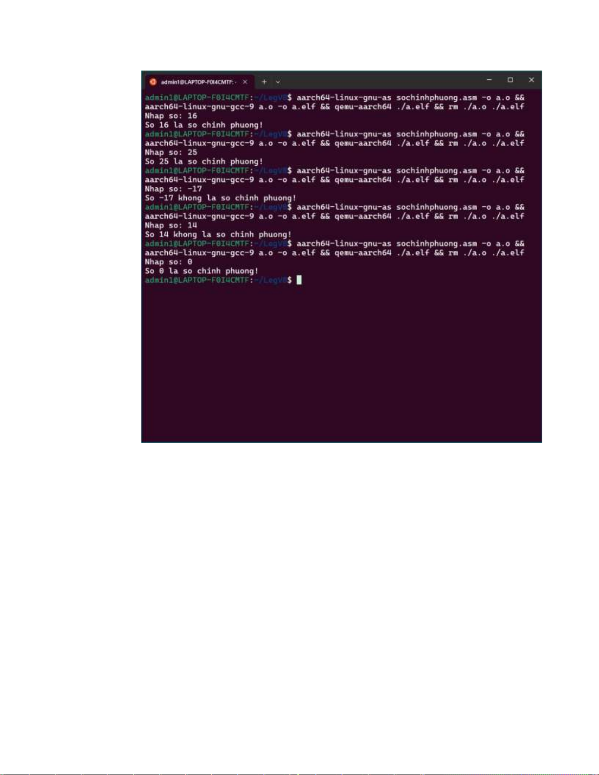 n. Kiểm tra n có là số chính phương trình nằm trong tệp hay không sochinhphuong.asm