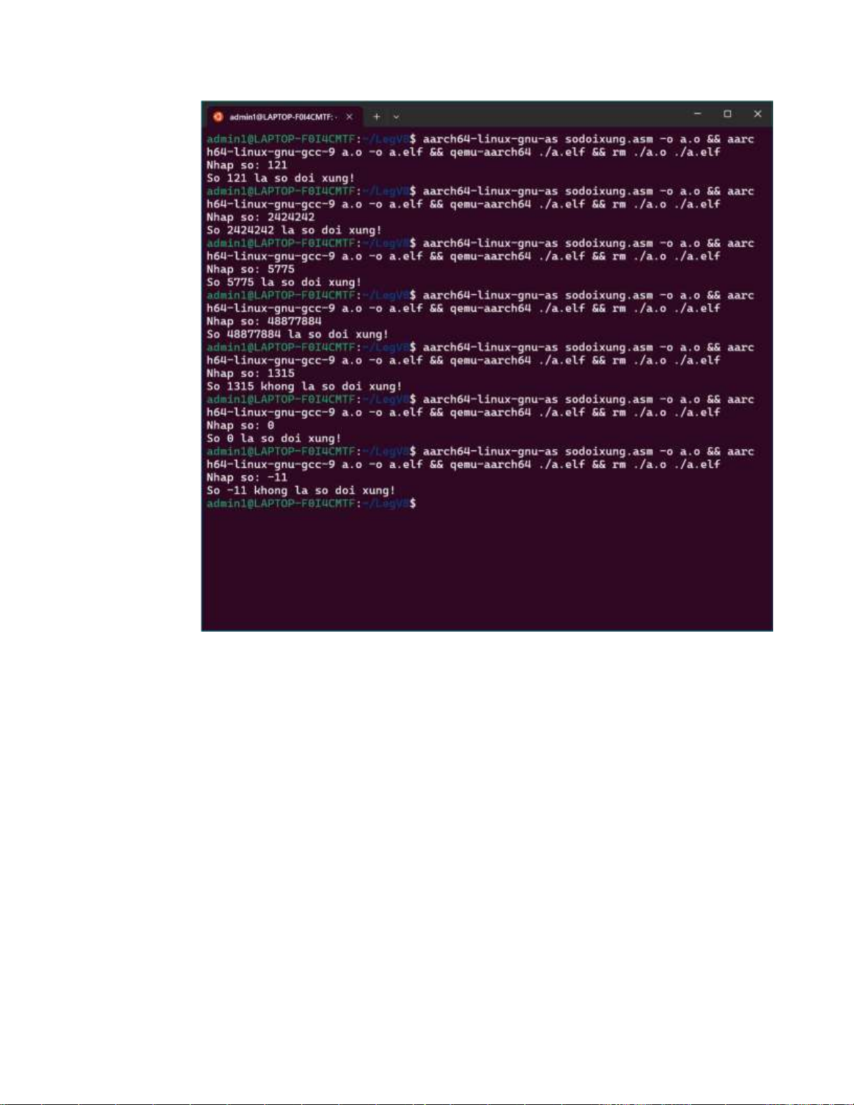 n. Kiểm tra n có là số đối xứng hay trình nằm trong tệp không sodoixung.asm để thực hiện kiểm tra n là số đối xứng - Có thực hiện kiểm tra
