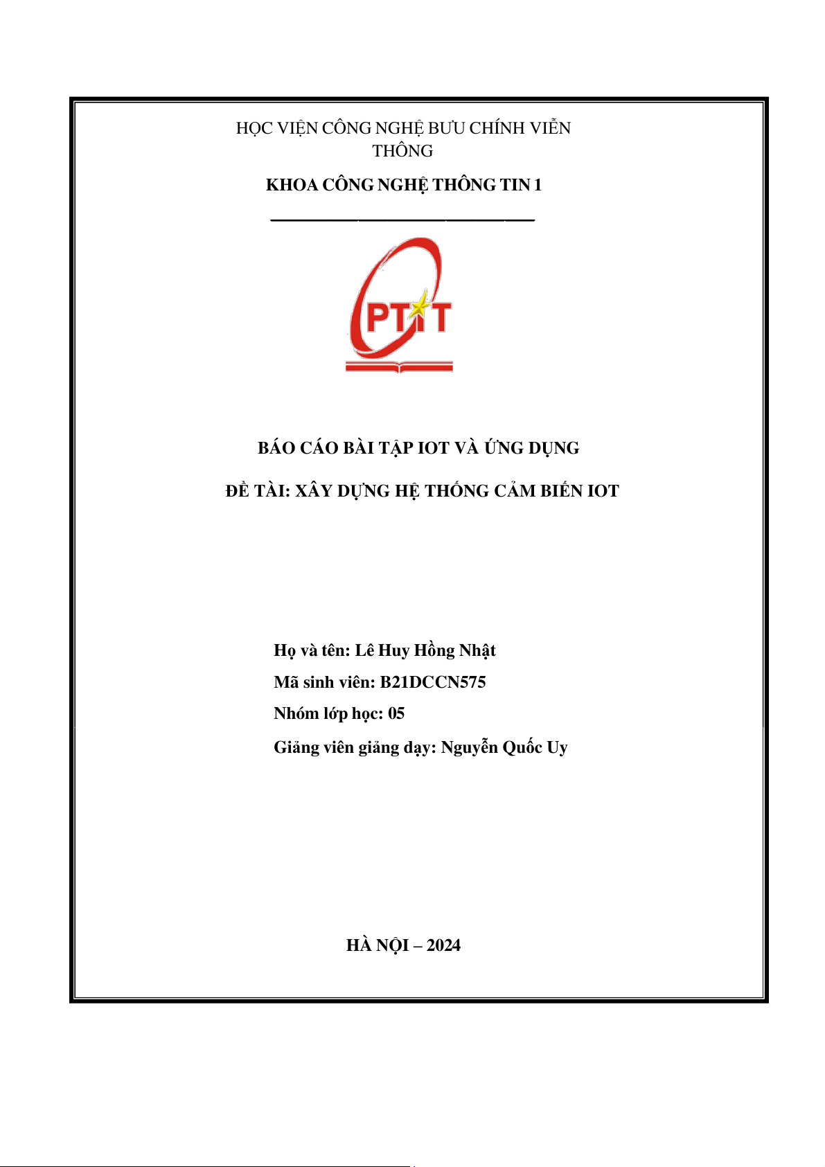 BÁO CÁO BÀI TẬP IOT VÀ ỨNG DỤNG