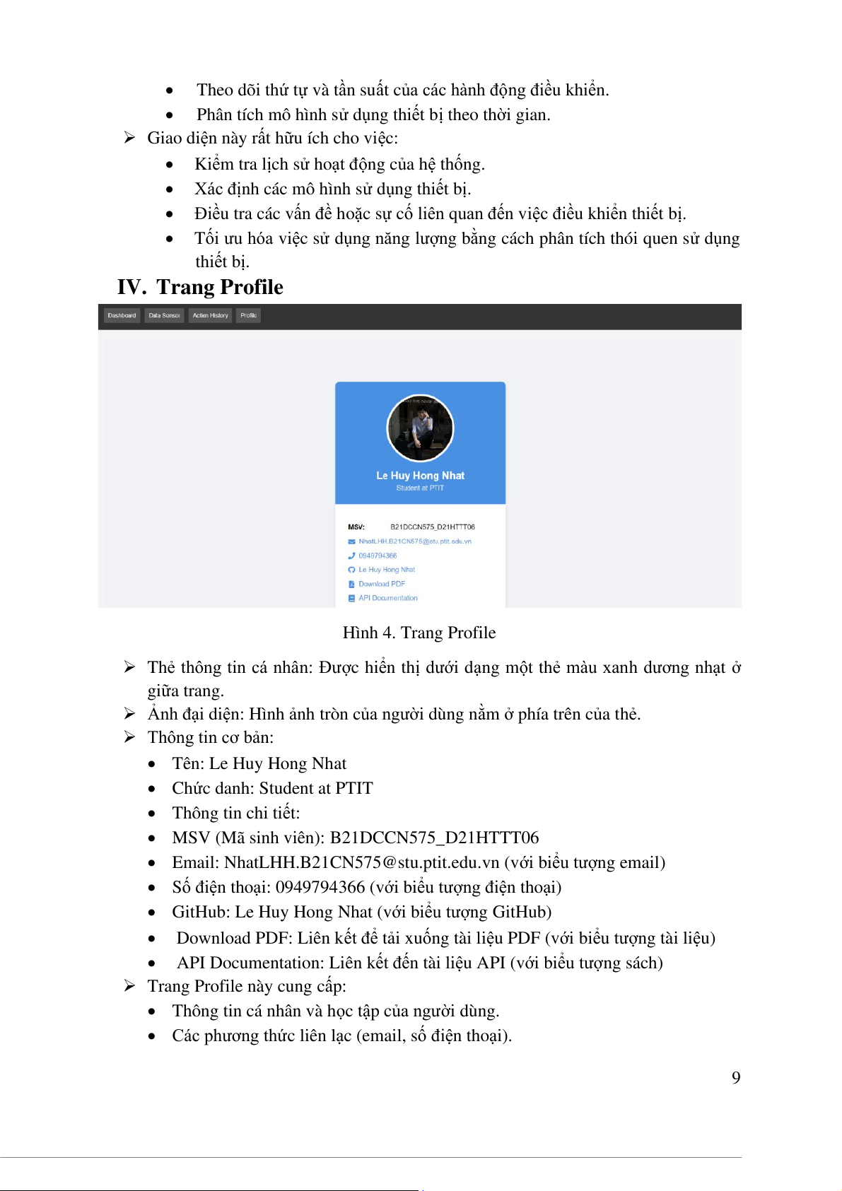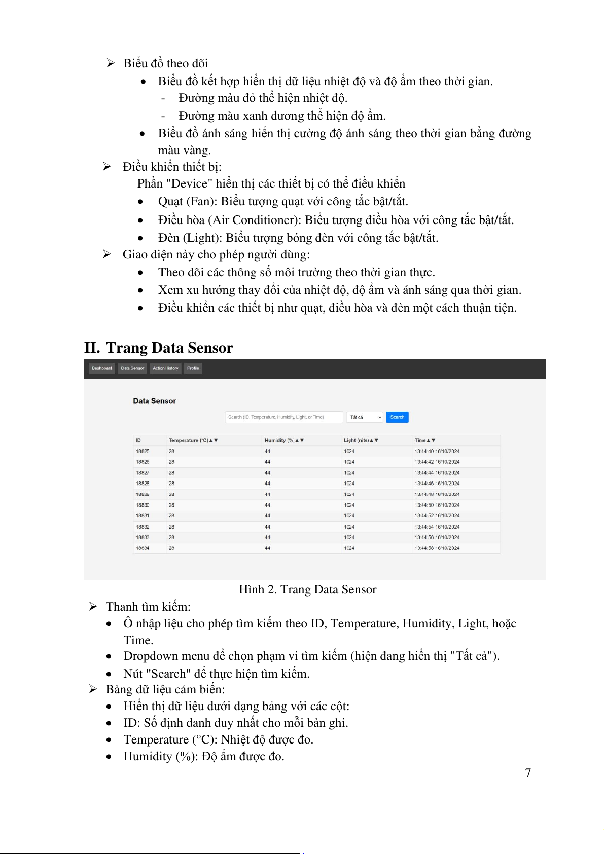 Dashboard, Data Sensor, Action History và Profile. e) API linh hoạt: