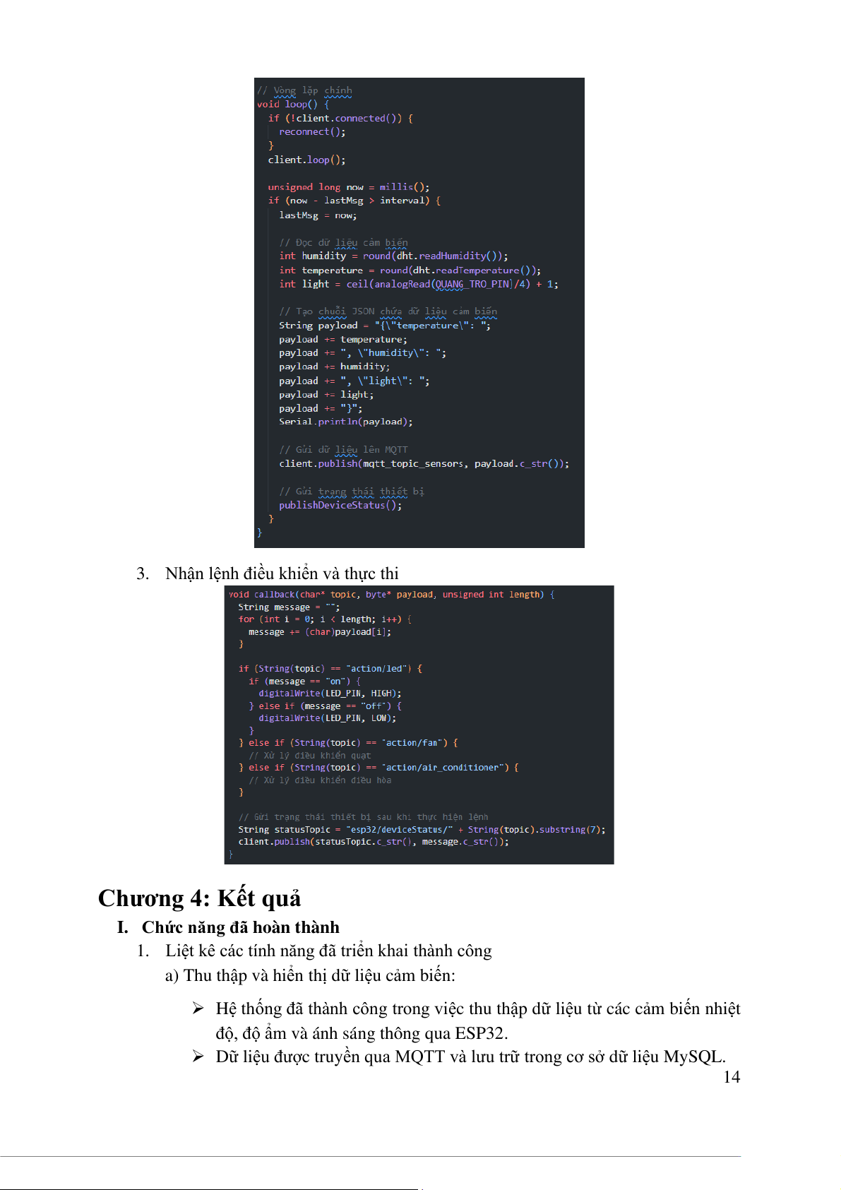 ➢ ESP32 thực hiện lệnh điều khiển và gửi phản hồi về trạng thái thiết bị.