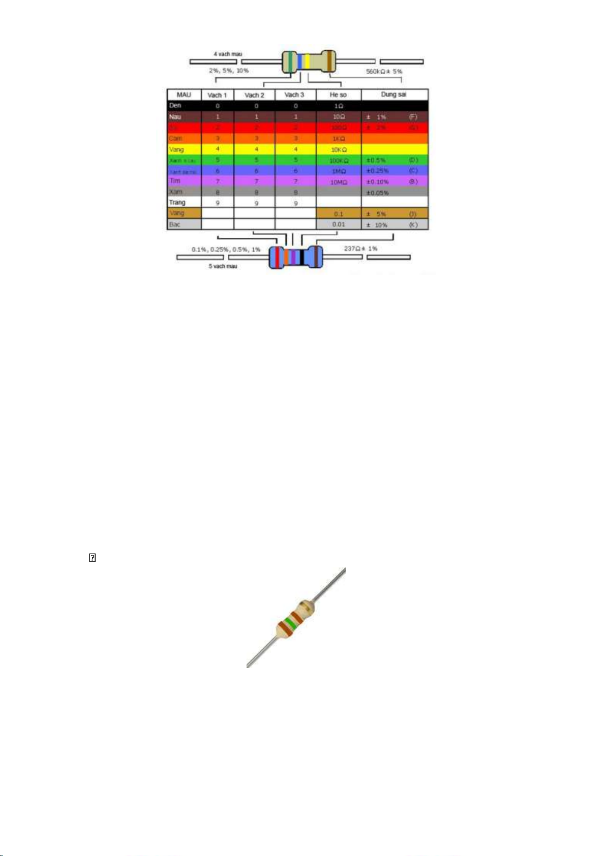 Khi Base không có điện áp đủ lớn, transistor không dẫn điện, giống như một công tắc mở. 3 lOMoAR cPSD| 58833082 2. Điện trở: