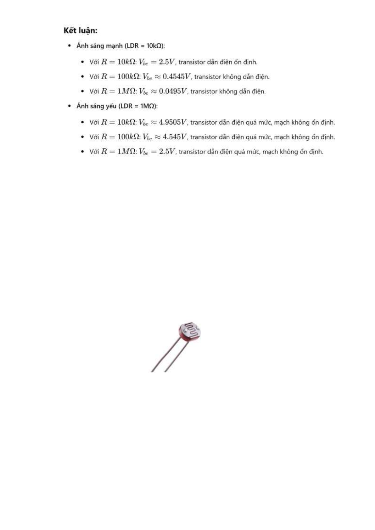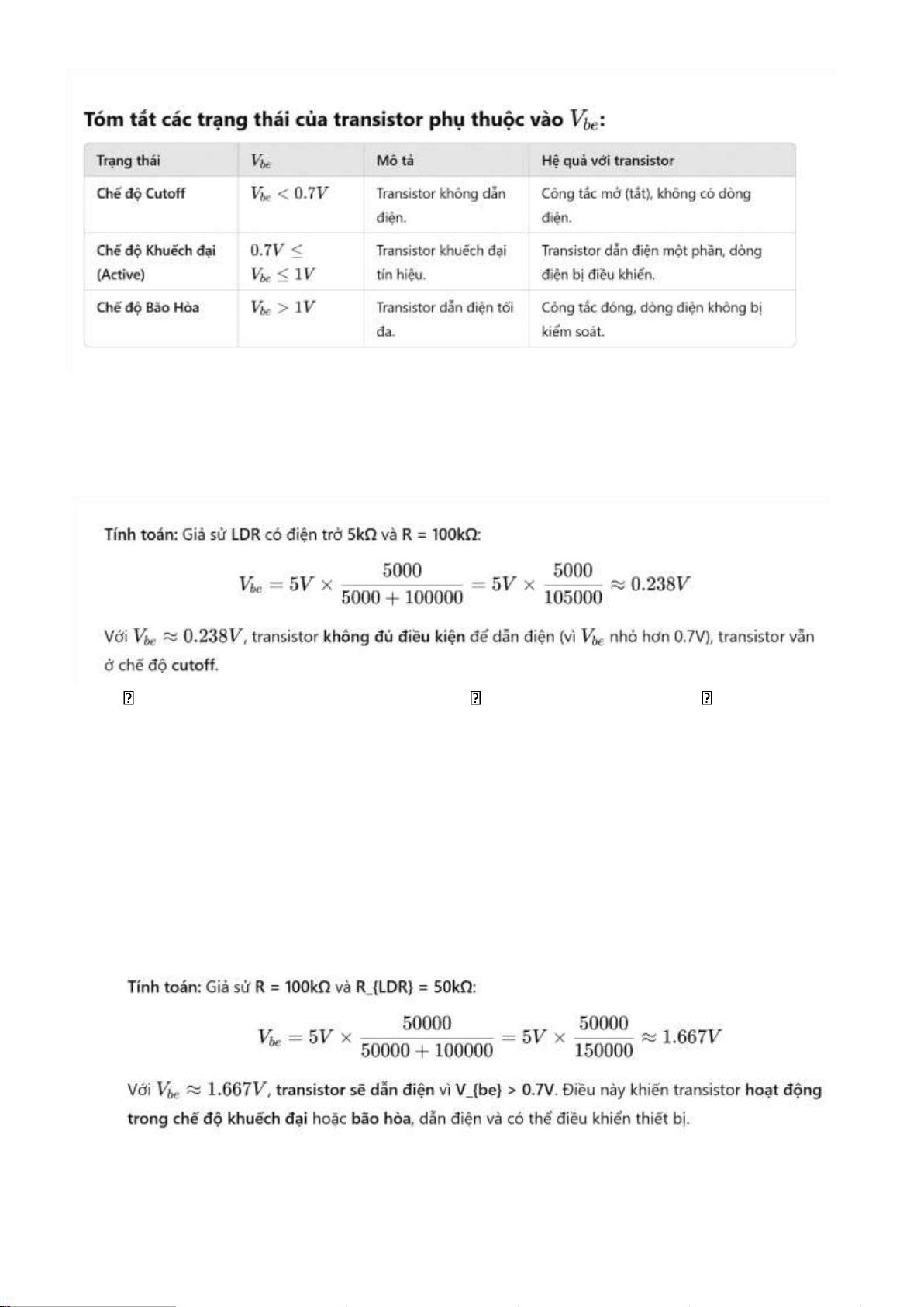 mạnh, LDR giảm điện trở, khiến transistor không dẫn điện (chế độ cutoff). Khi