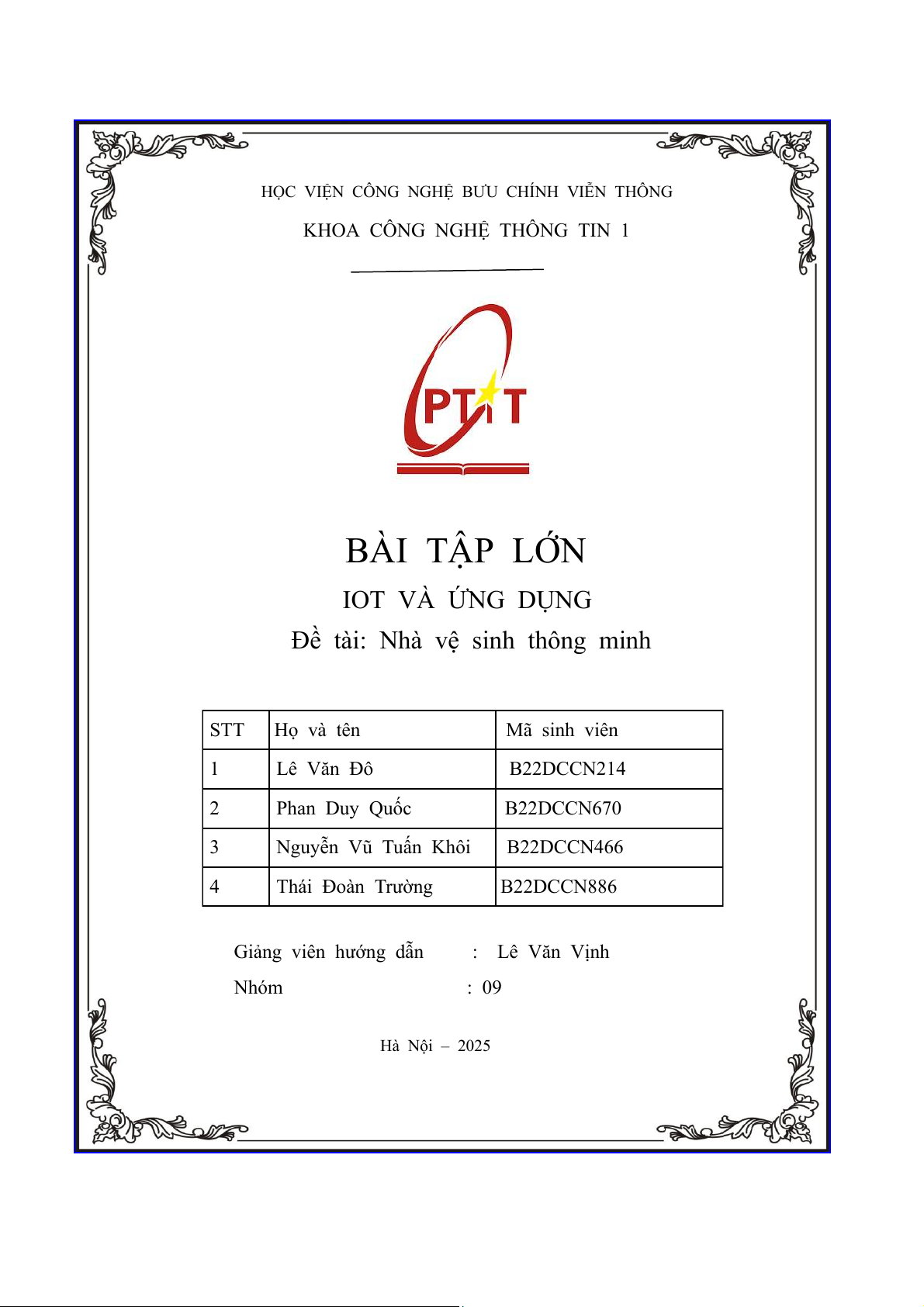 Đề tài: Nhà vệ sinh thông minh STT Họ và tên Mã sinh viên 1 Lê Văn Đô B22DCCN214 2 Phan Duy Quốc B22DCCN670 3