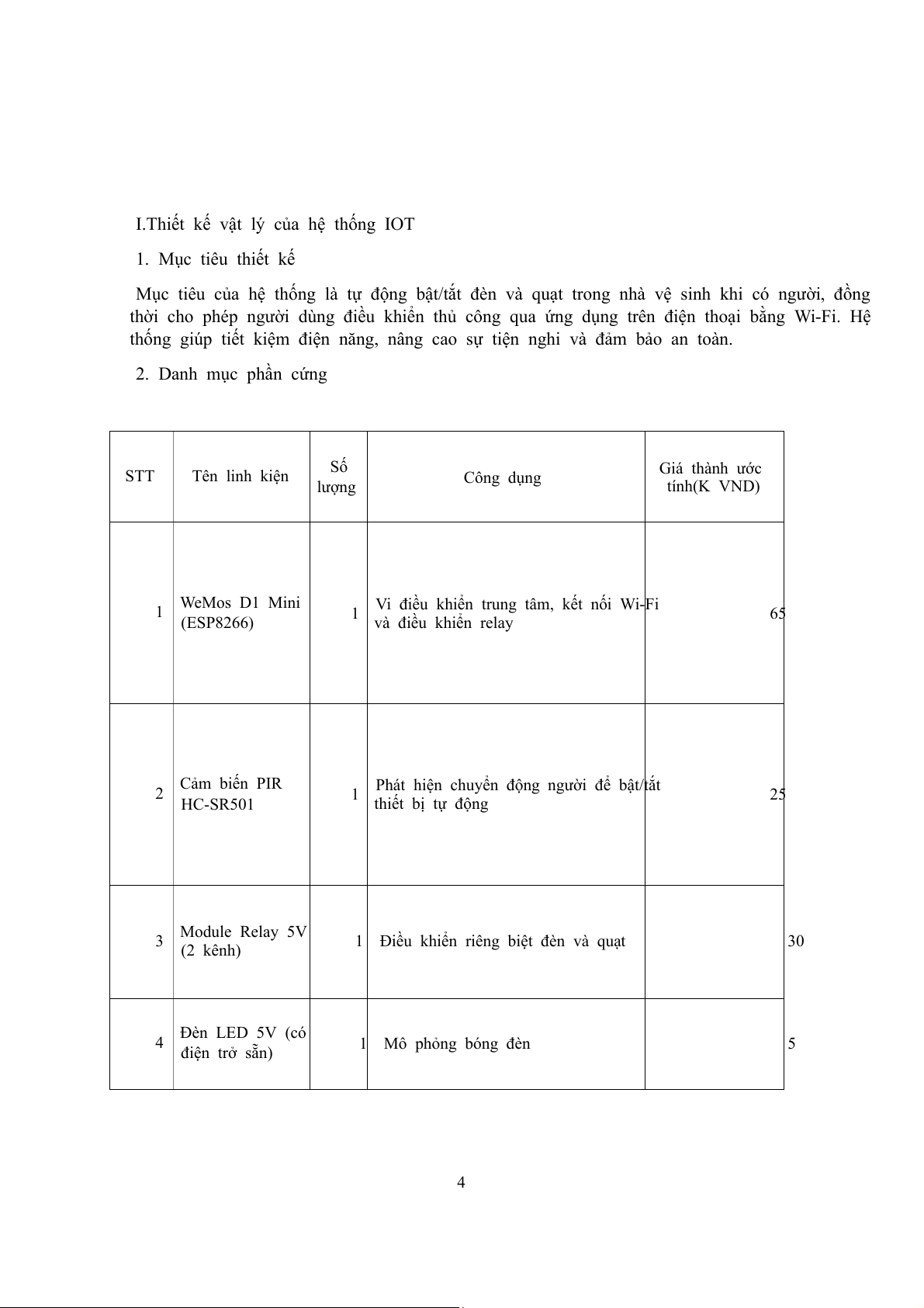 I.Thiết kế vật lý của hệ thống IOT...........................................................................................................4