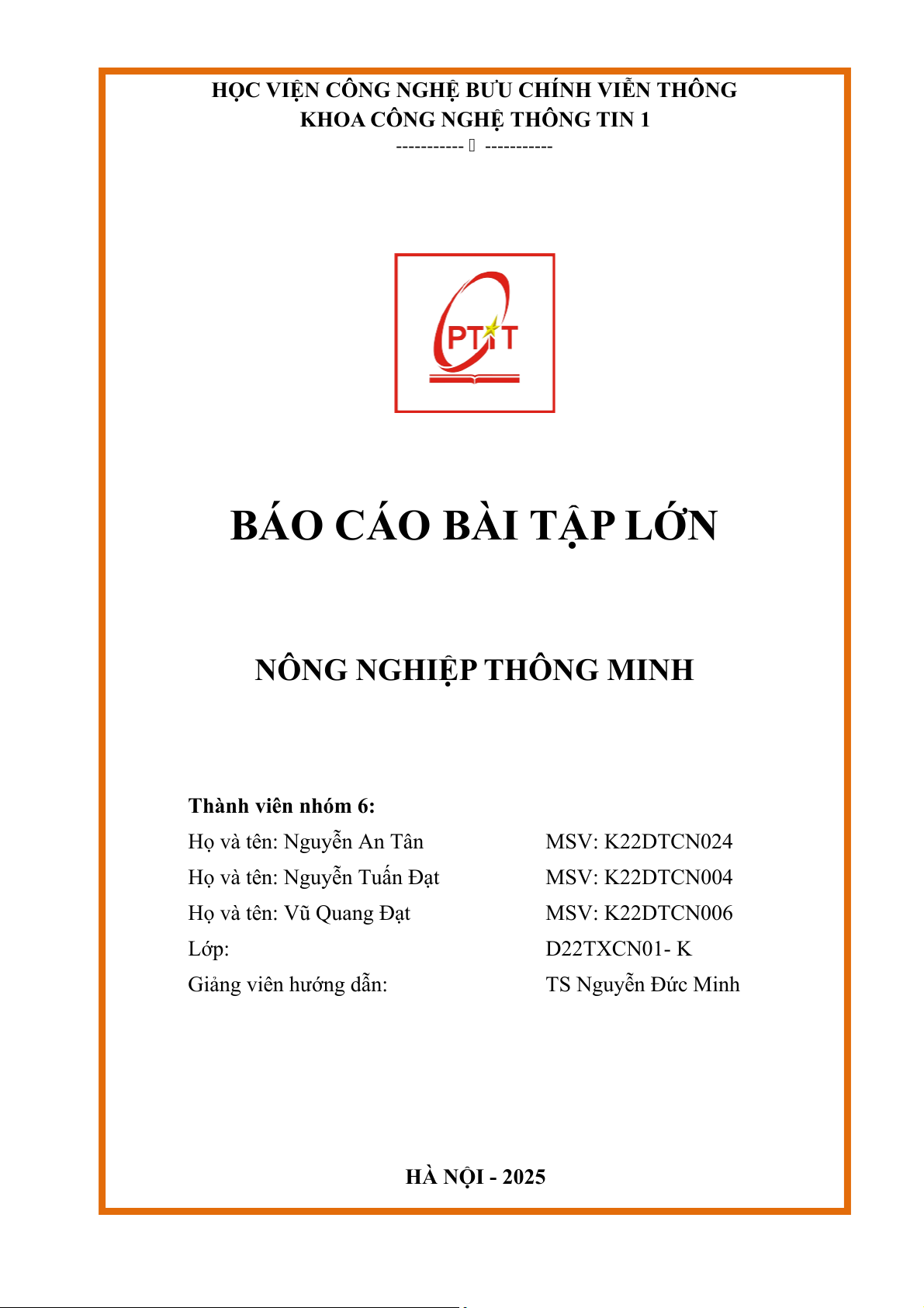 NÔNG NGHIỆP THÔNG MINH Thành viên nhóm 6: