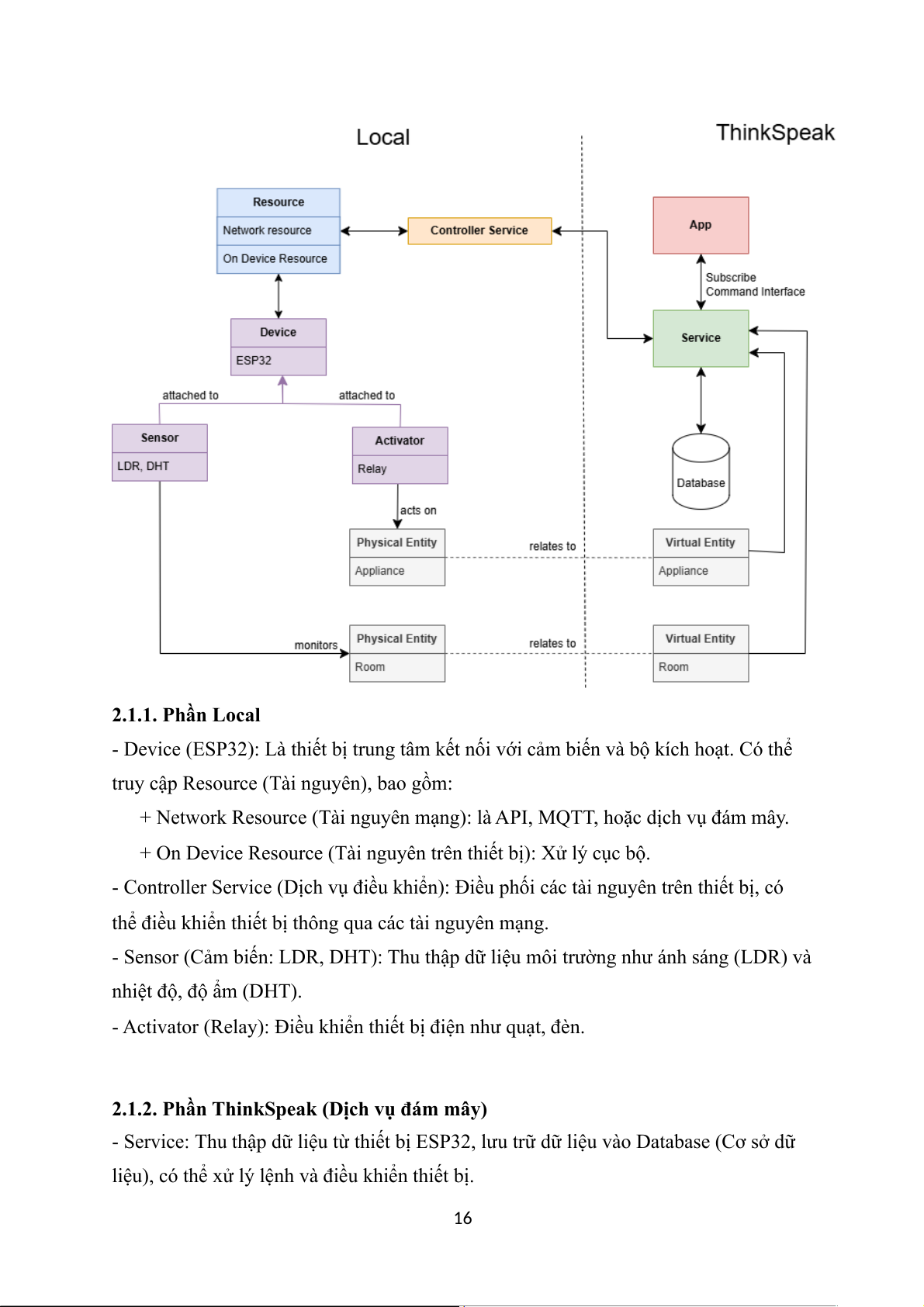 - Device (ESP32): Là thiết bị trung tâm kết nối với cảm biến và bộ kích hoạt. Có thể