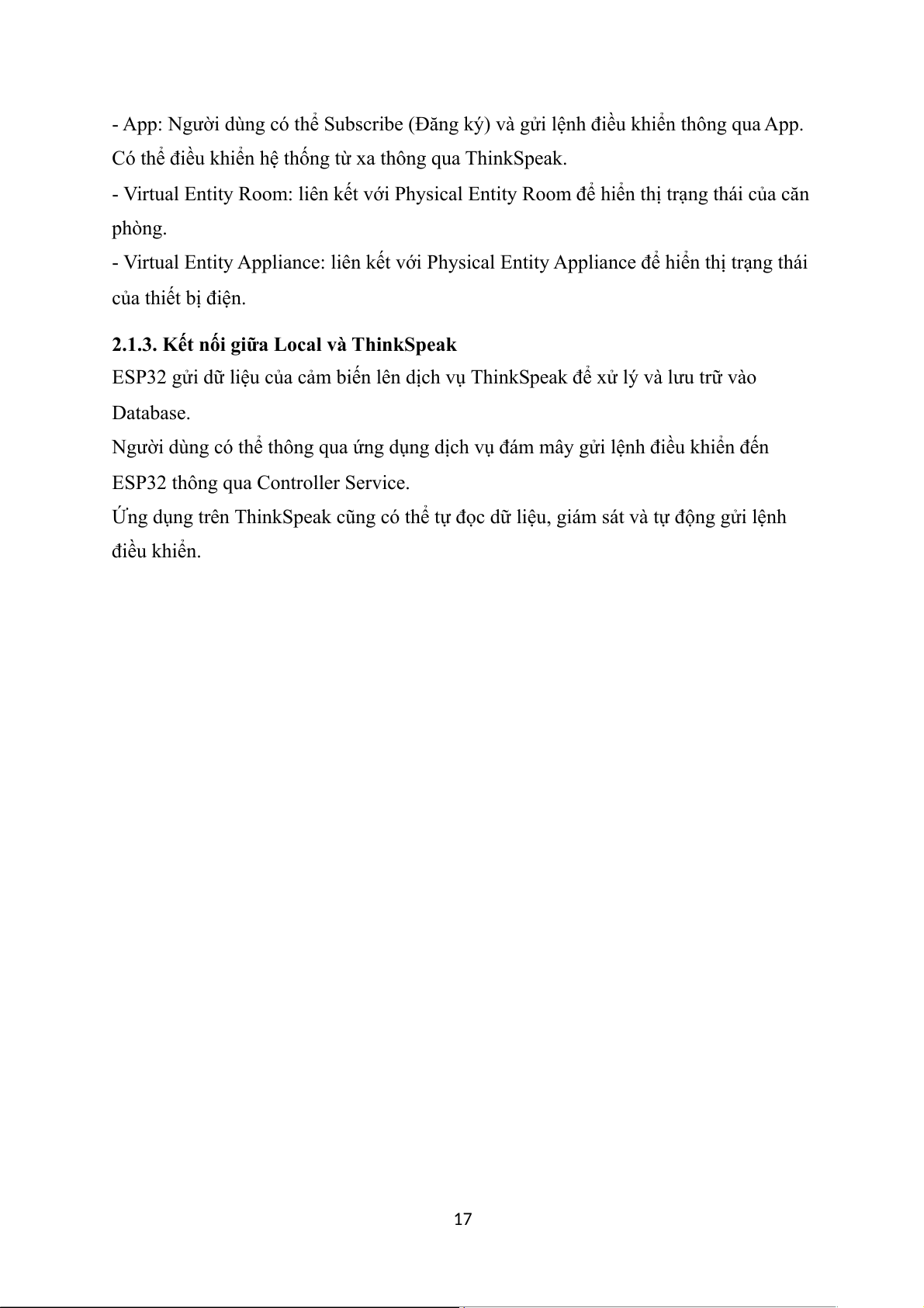 Ứng dụng trên ThinkSpeak cũng có thể tự đọc dữ liệu, giám sát và tự động gửi lệnh điều khiển. 17