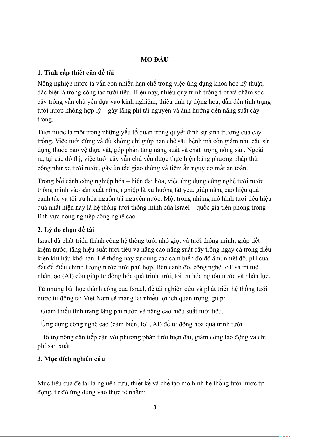 Mục tiêu của đề tài là nghiên cứu, thiết kế và chế tạo mô hình hệ thống tưới nước tự