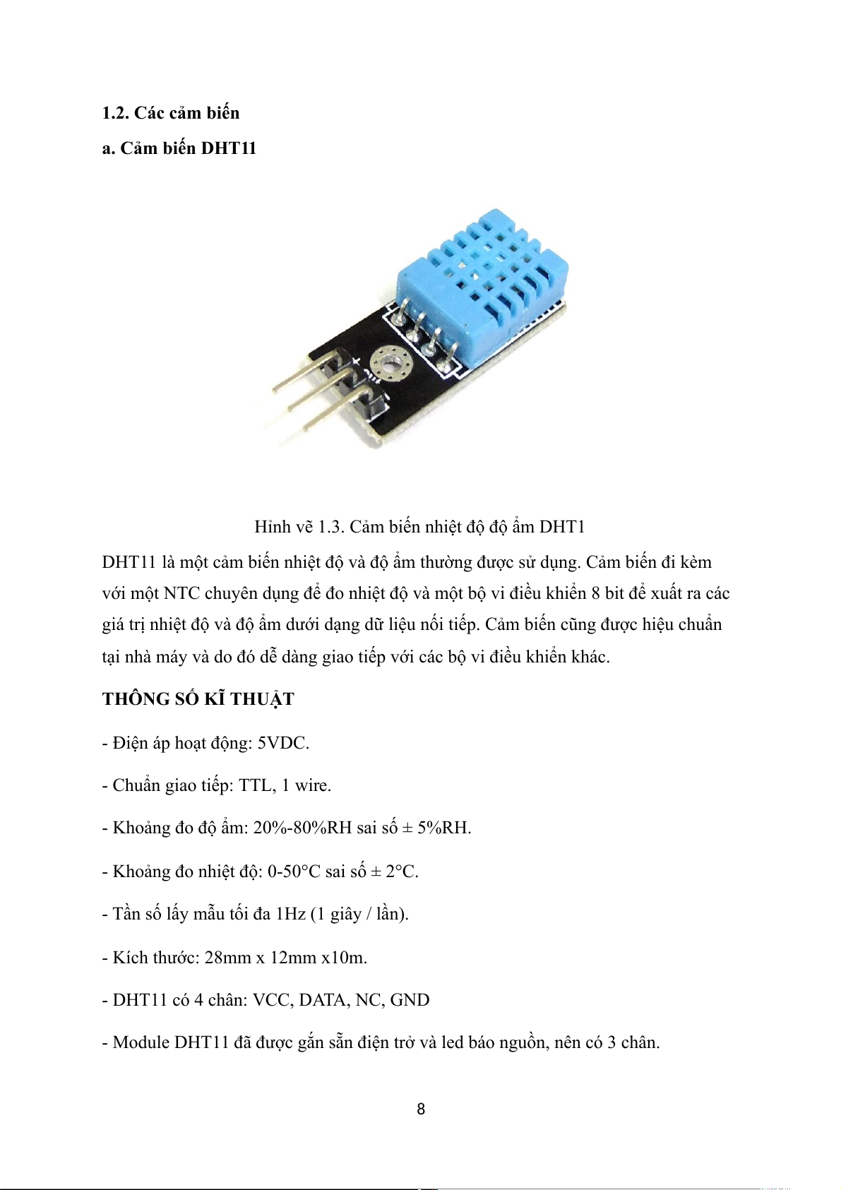 trung tâm, cảm biến DHT11 để đo nhiệt độ và độ ẩm, cảm biến ánh sáng để xác định
