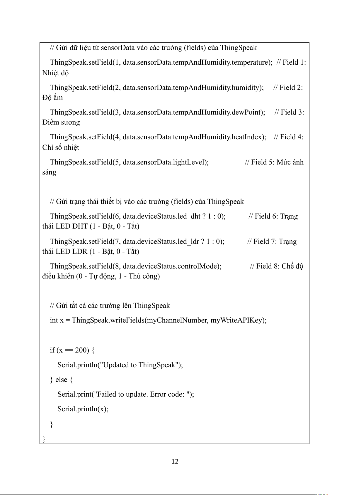 cường độ và thời gian sáng. Dữ liệu thu thập được gửi lên cloud Thingspeak để lưu