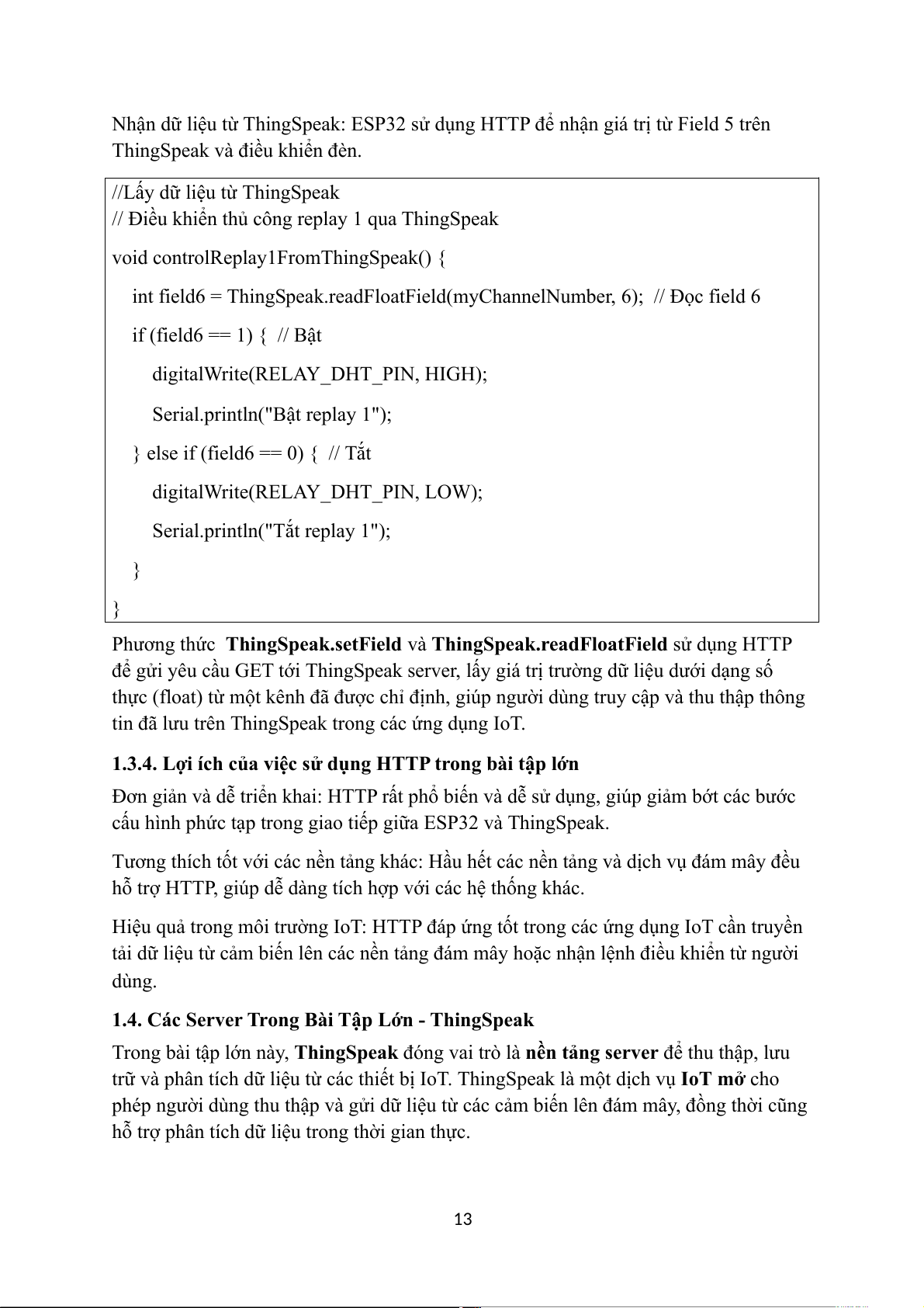 1.4.2. Vai trò của ThingSpeak trong bài tập lớn...................................................13