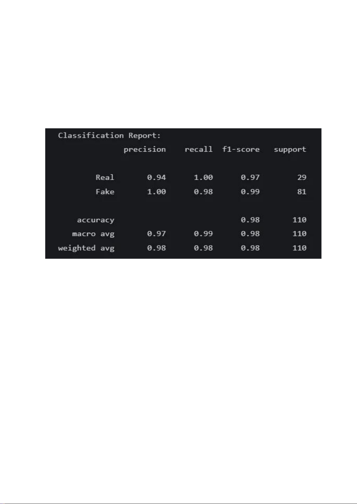 ▪ Đối với lớp Real, recall là 1.00. Mô hình đã xác định chính xác tất