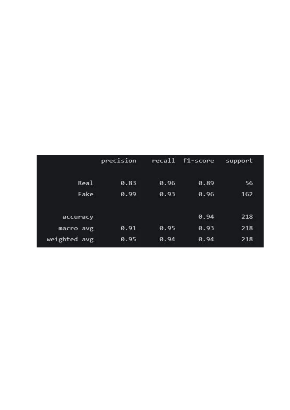 ▪ Đối với lớp Real, precision là 0.94. Điều này có nghĩa là khi mô