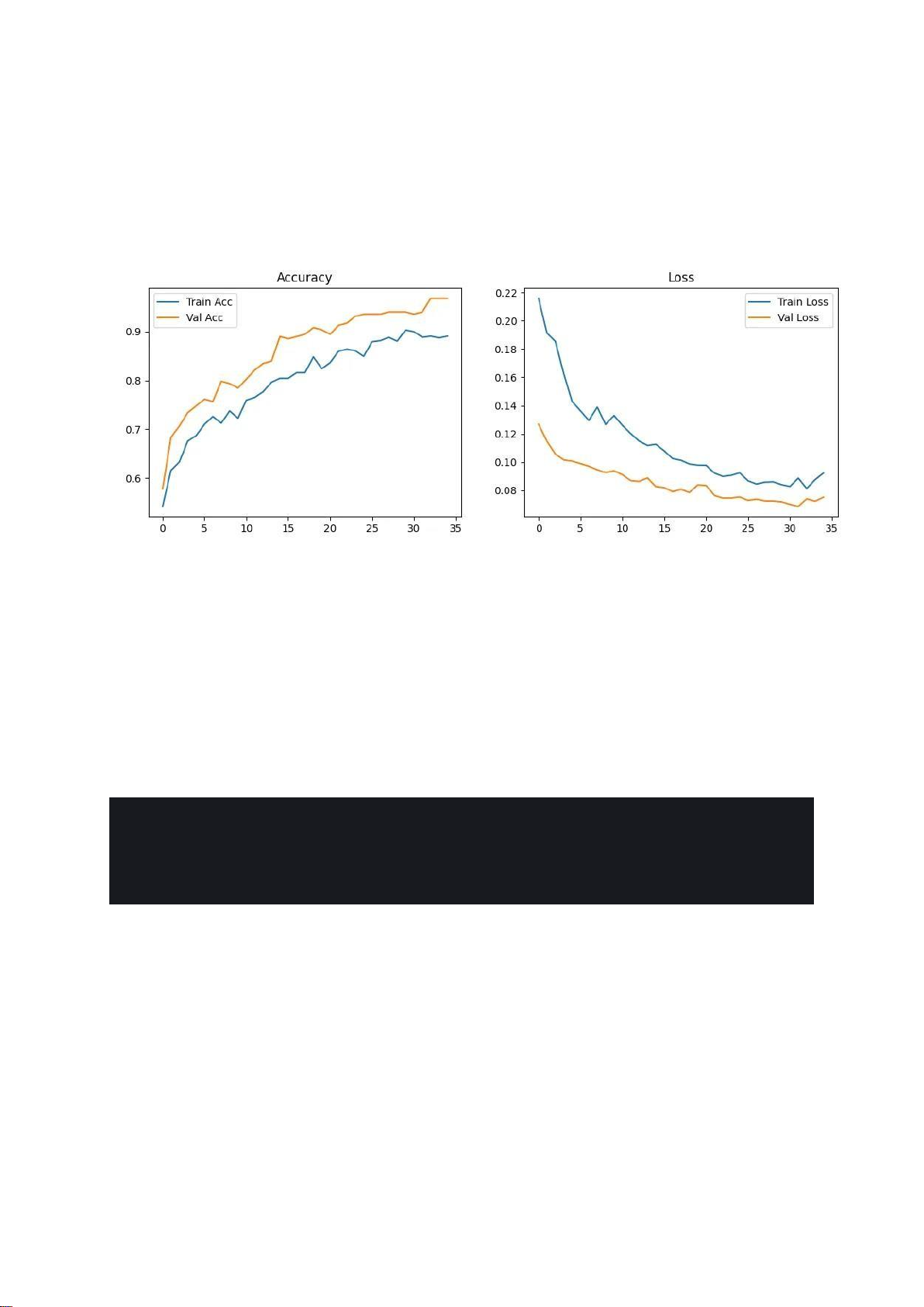 Biểu đồ "Accuracy" và "Loss" cho thấy một quá trình huấn luyện rất lành mạnh và được kiểm soát tốt. •