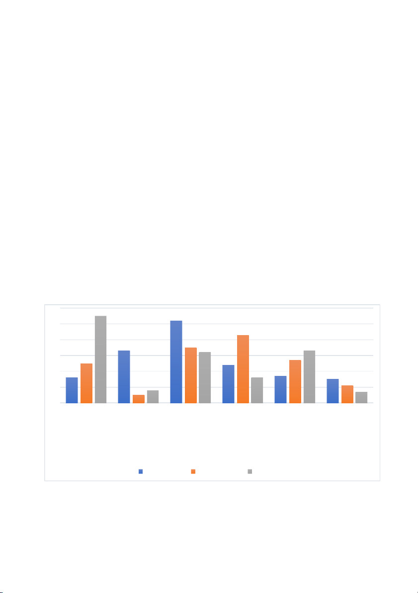 Biểu đồ 7: Lý do người tiêu dùng lựa chọn các cửa hàng cà phê ở ba loại cửa hàng 60 55 52 50 43 40 35 33 32 33 30 27 25 24 20 16 17 15 16 11 10 8 7 5 0 Giá bán hợp lý Thương hiệu tốt Hương vị sản Không gian quán Địa điểm quán Menu đa dạng phẩm lý tưởng Chuỗi cửa hàng Cửa hàng độc lập Quán vỉa hè (Nguồn: Tổng hợp)