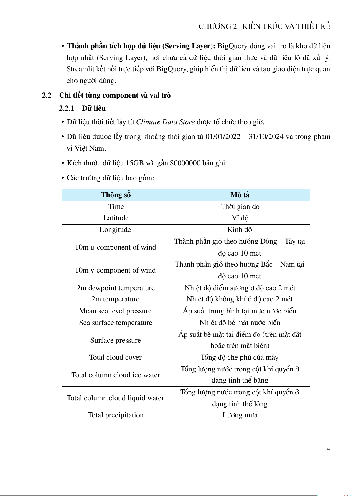 cloud. Trong dự án này, BigQuery được sử dụng để lưu trữ và phân tích dữ liệu thời tiết đã được