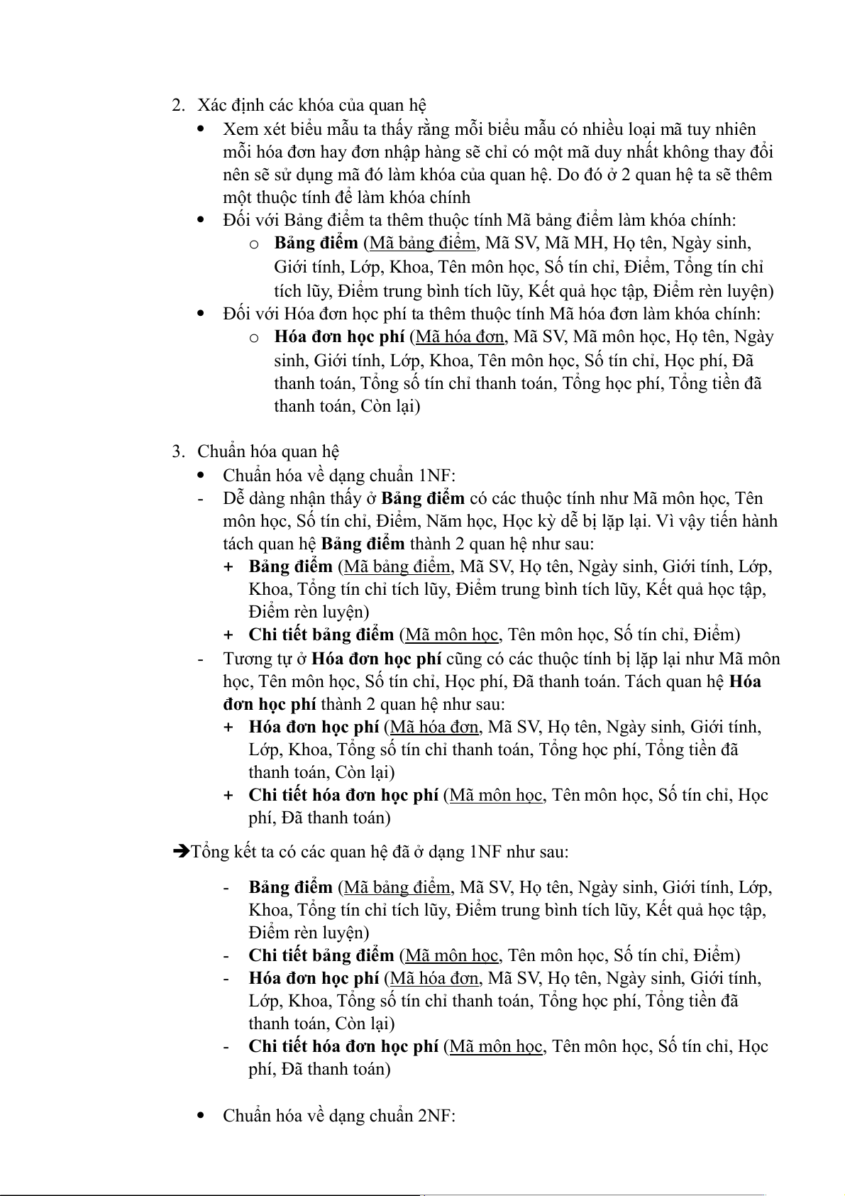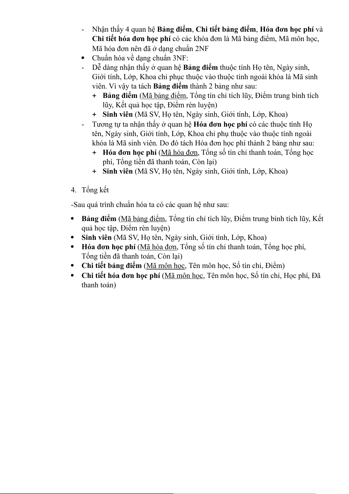 thanh toán, Tổng số tín chỉ thanh toán, Tổng học phí, Tổng tiền đã thanh toán, Còn lại) 3. Chuẩn hóa quan hệ