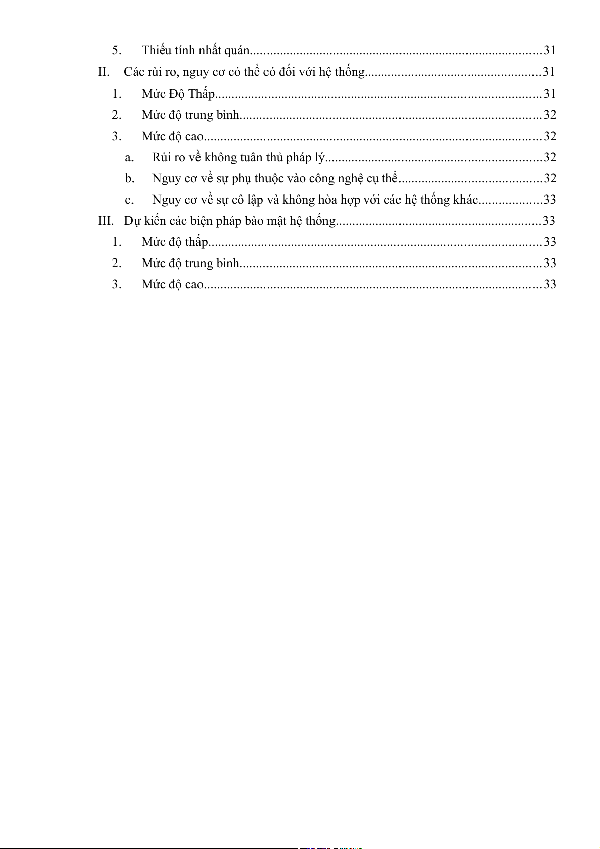 II. Các rủi ro, nguy cơ có thể có đối với hệ thống.....................................................31 1.