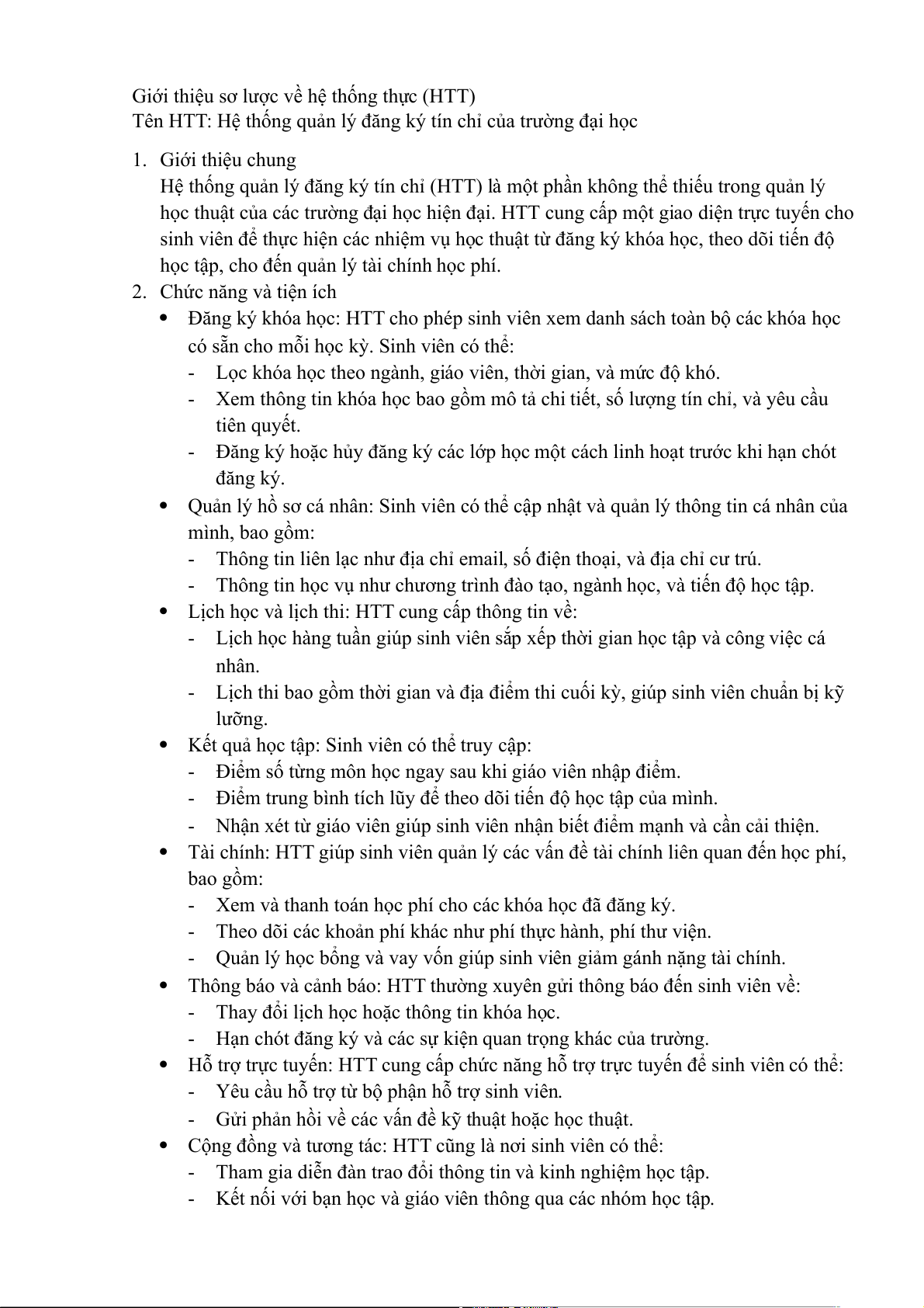 Tên HTT: Hệ thống quản lý đăng ký tín chỉ của trường đại học 1. Giới thiệu chung