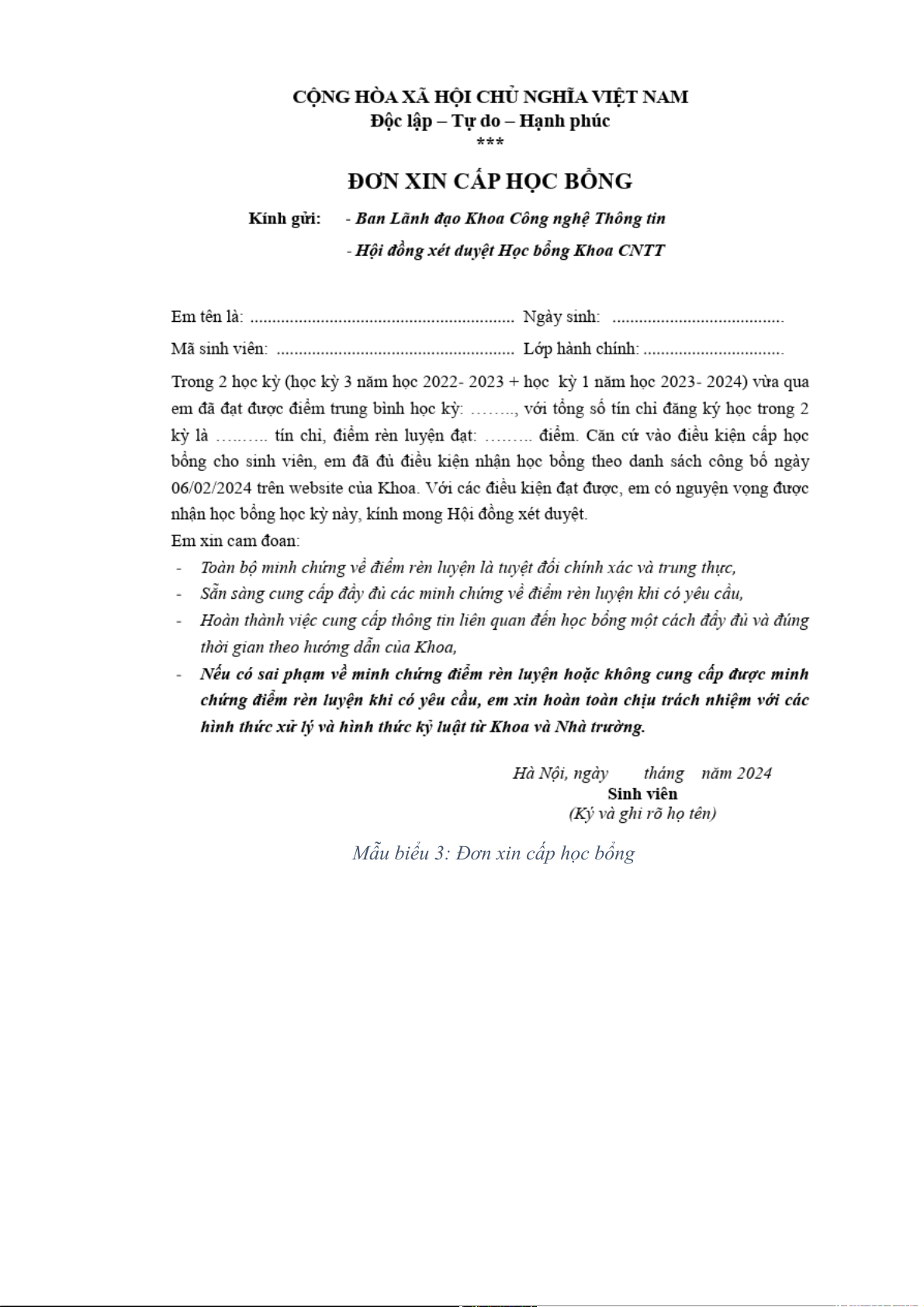 - Thông tin học vụ: Ngành học, chương trình đào tạo, và thông tin liên quan đến học bổng (nếu có).