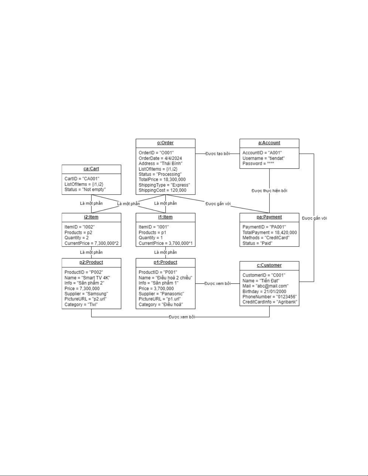 Khách hàng Tiến Đạt có tài khoản mã A001 thực hiện tạo đơn hàng mã O001. Đơn